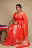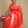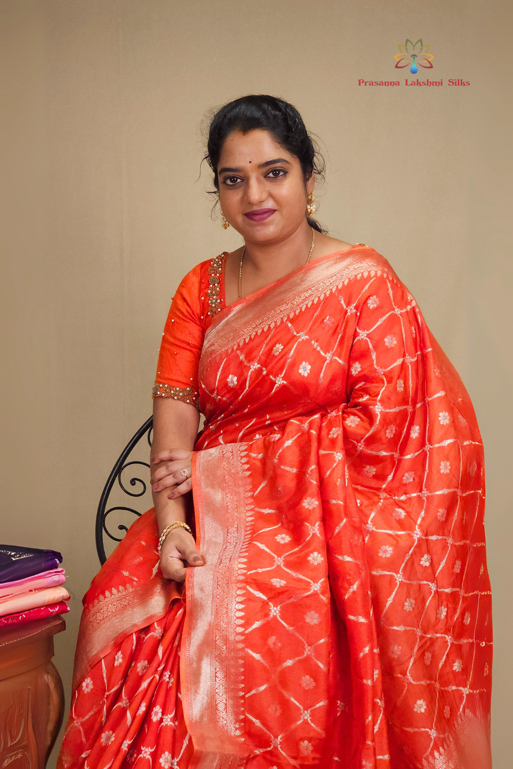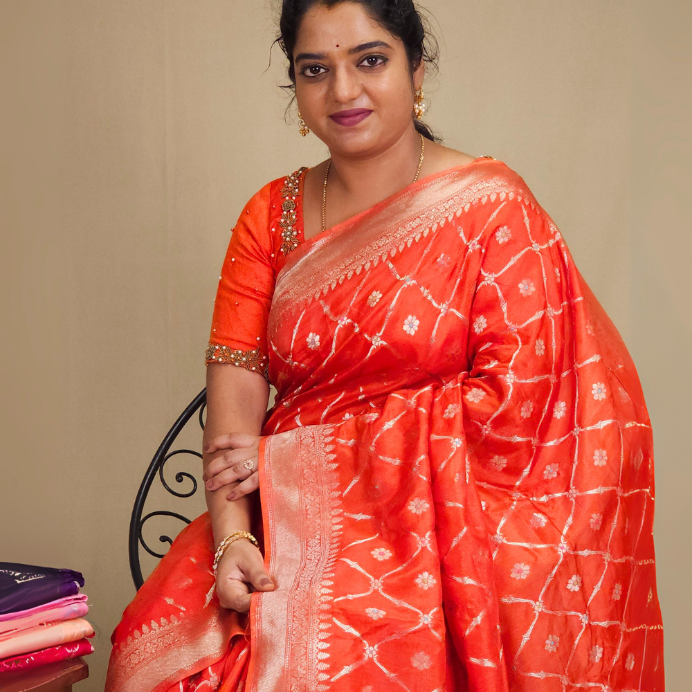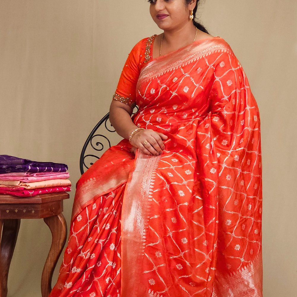 Elevate your style with our Banaras Munga Sarees featuring allover silver zari-woven brocade design tiny floral motifs in it, crafted with meenakaari charm with fine zari khaddi borders, a rich brocade pallu paired with running blouse....