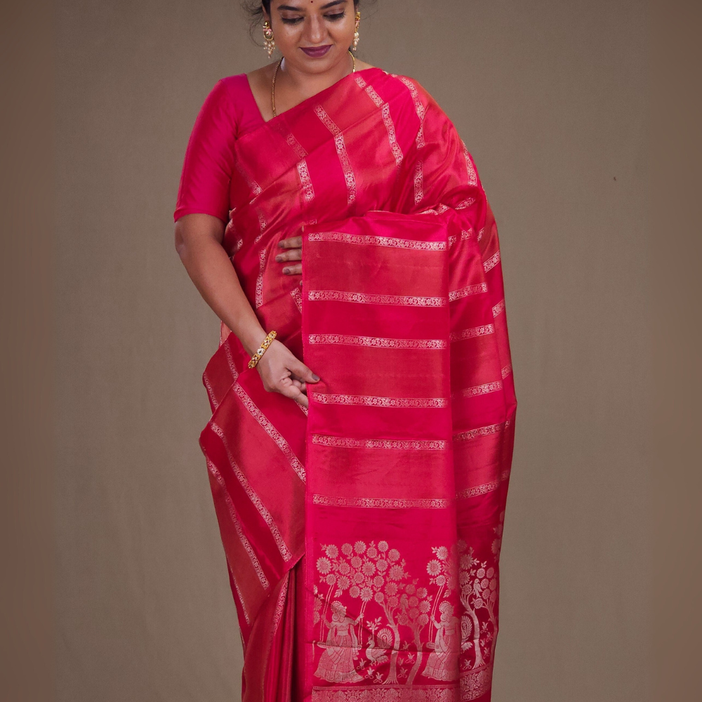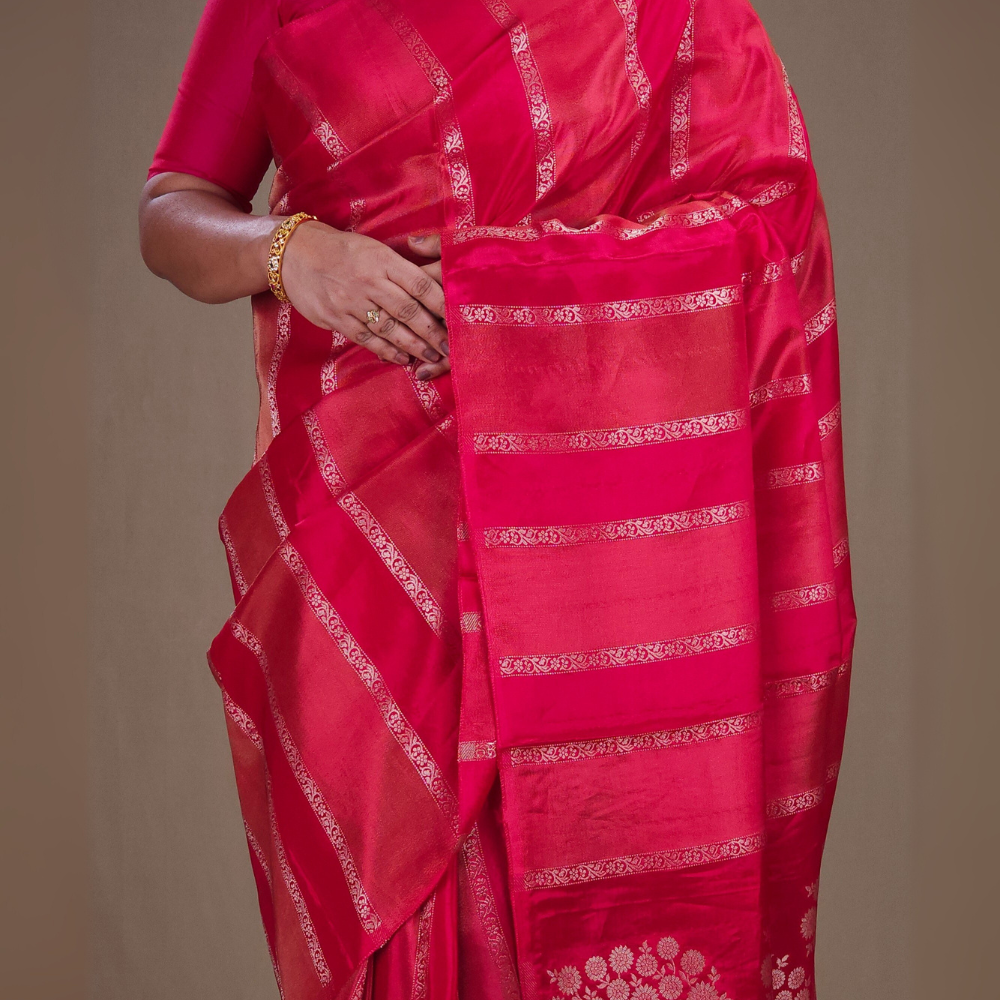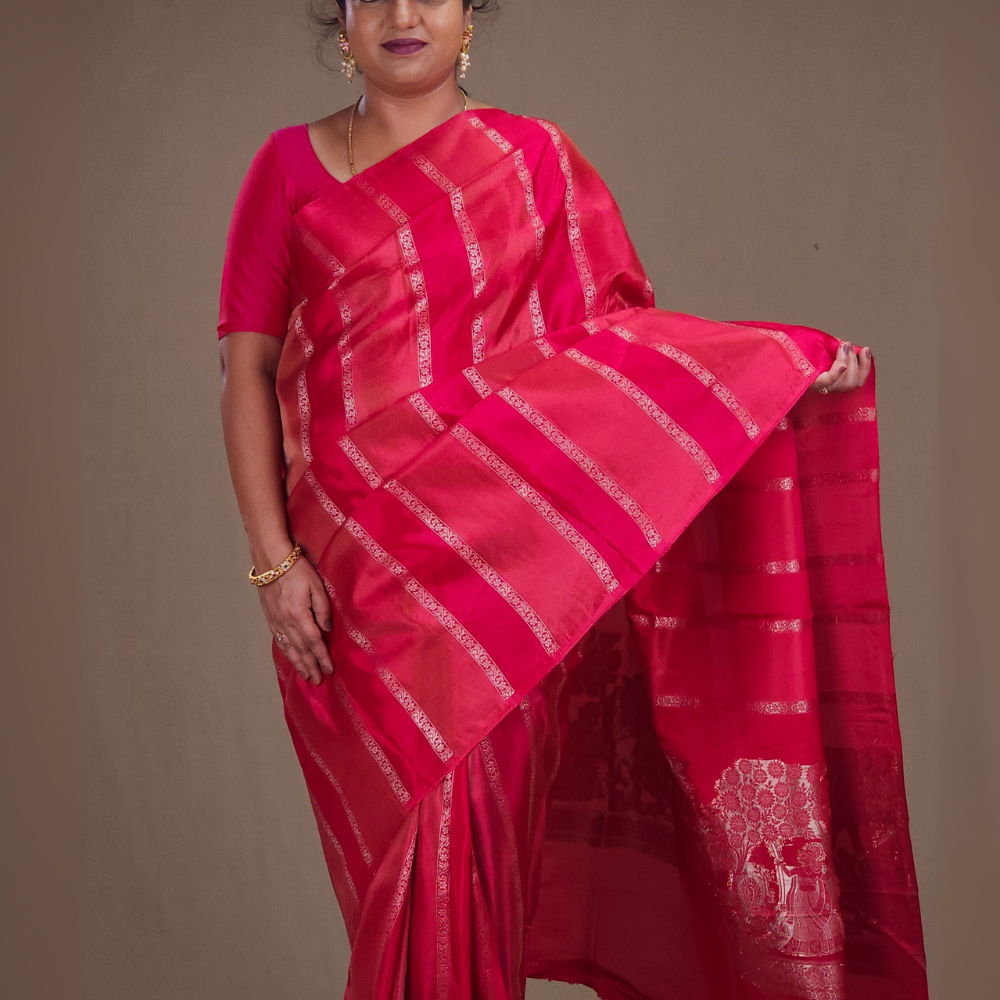 Reddish Pink Banarasi Munga sarees