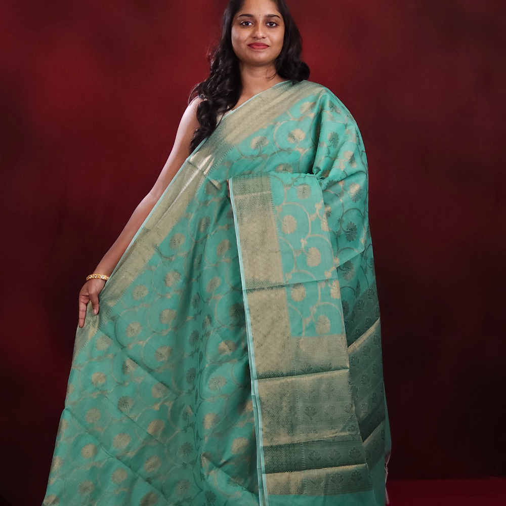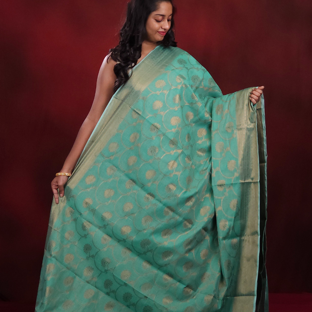 Sea Green Banarasi silk cotton sarees