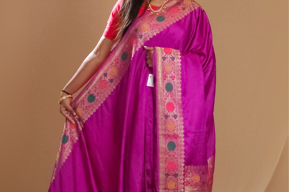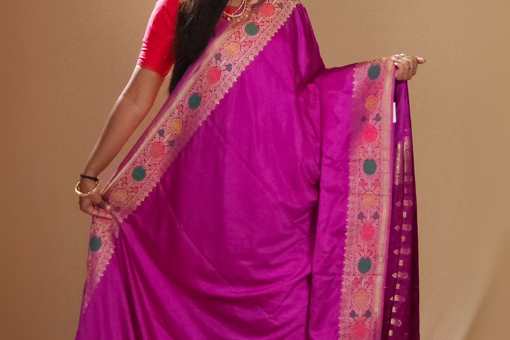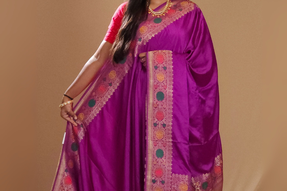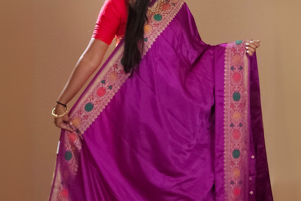 Violet Banaras Satin Silk Saree
