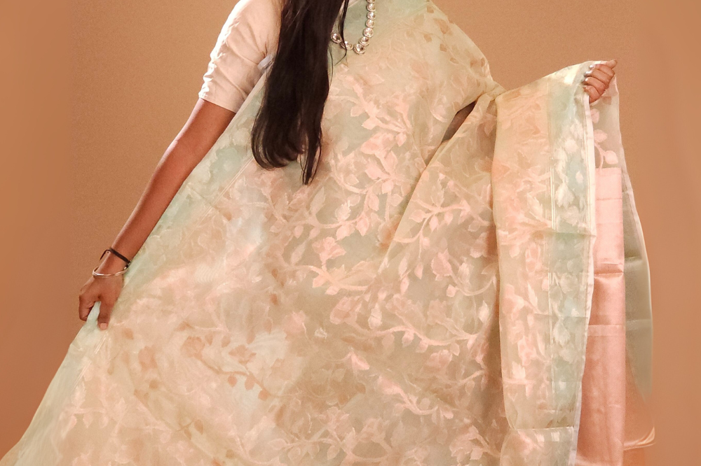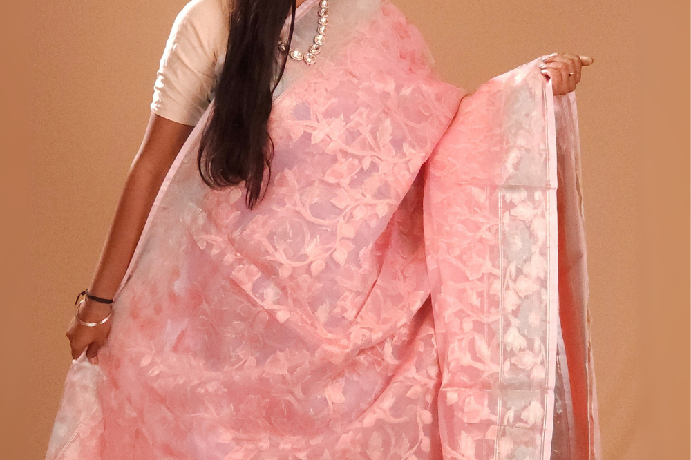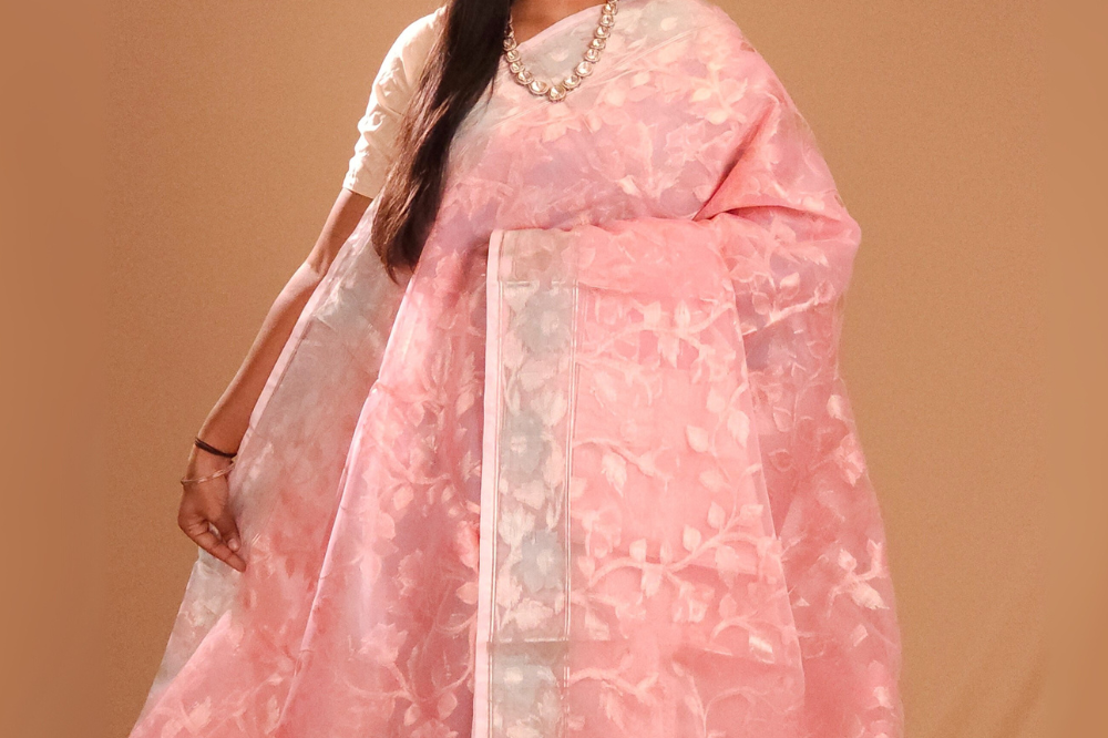 Baby Pink Kora Organza Saree