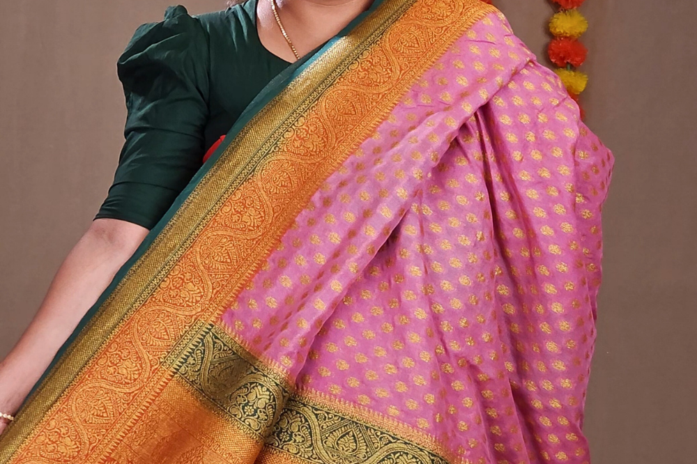 Lotus Pink Semi Banaras Khaddi Georgette Sarees
