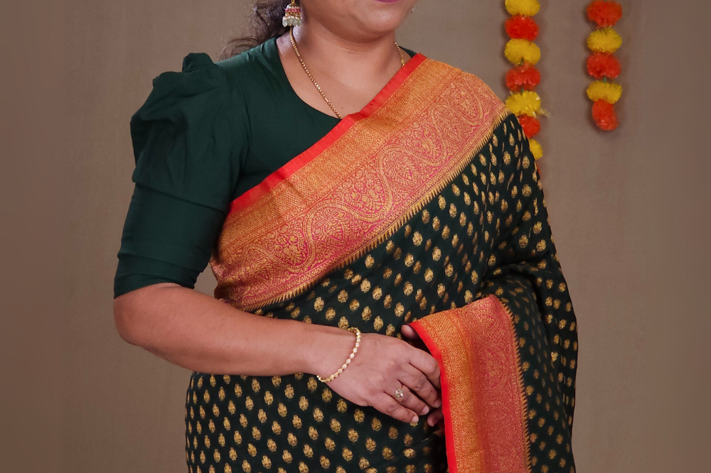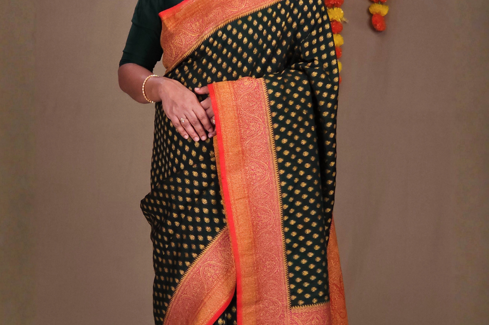 Bottle Green Semi Banaras Khaddi Georgette Sarees