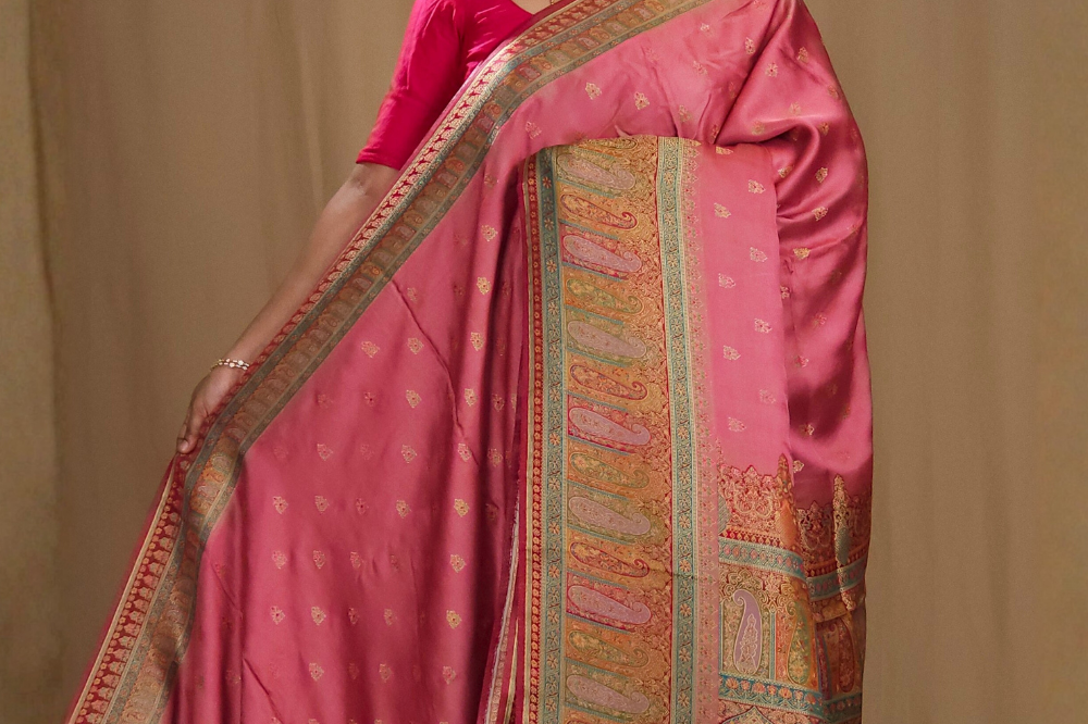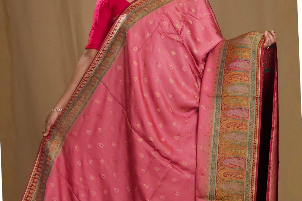 Onion Pink Pashmina Satin Saree