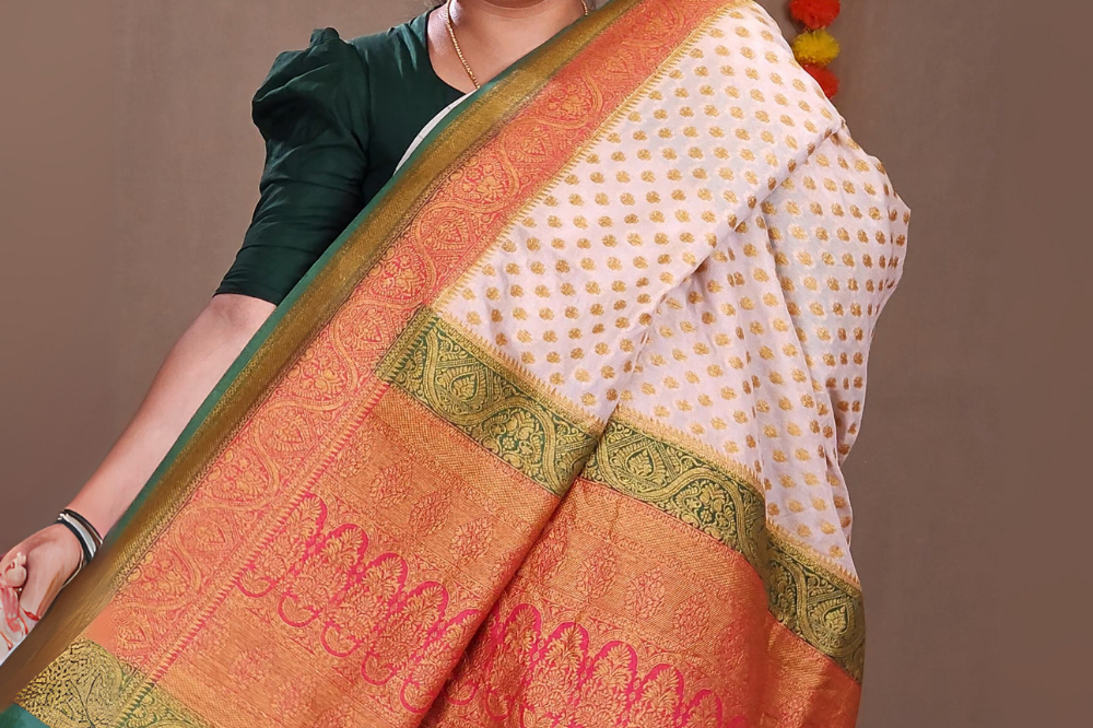 Half White Semi Banaras Khaddi Georgette Sarees