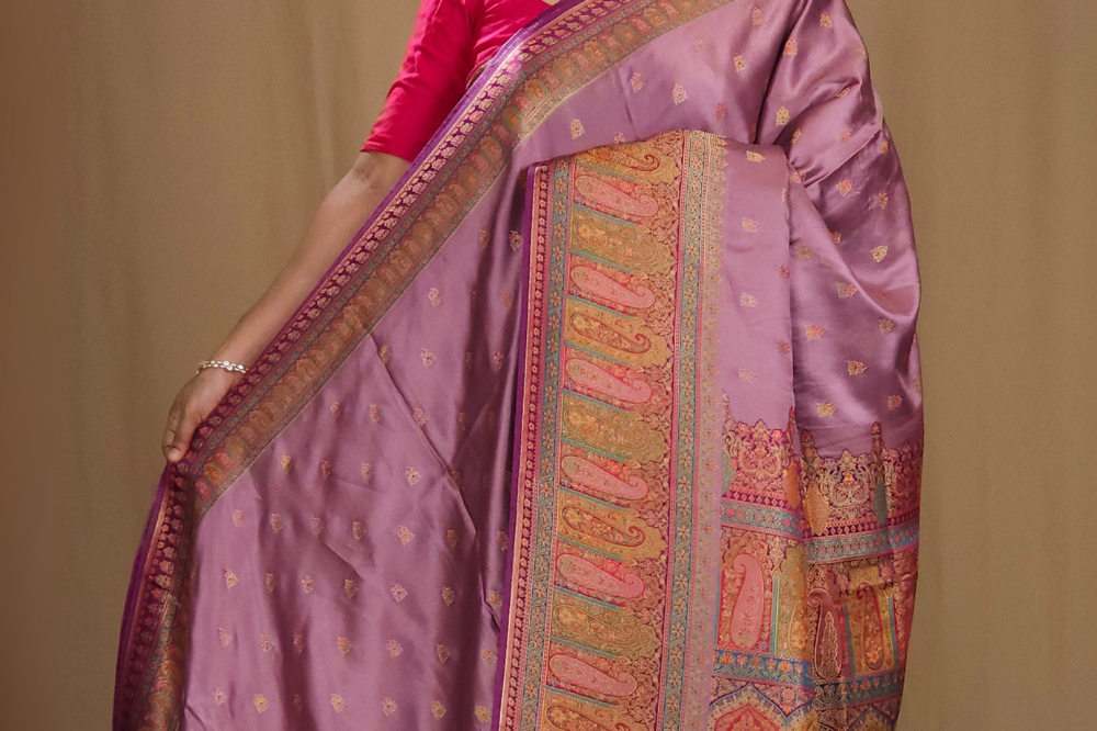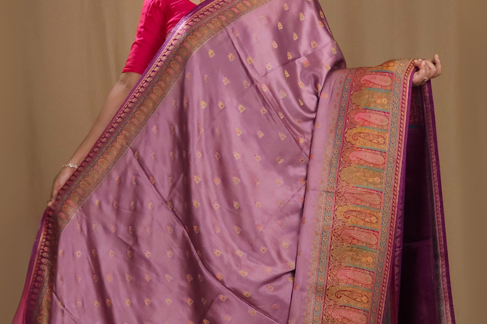 Light Grape Wine Pashmina Satin Saree