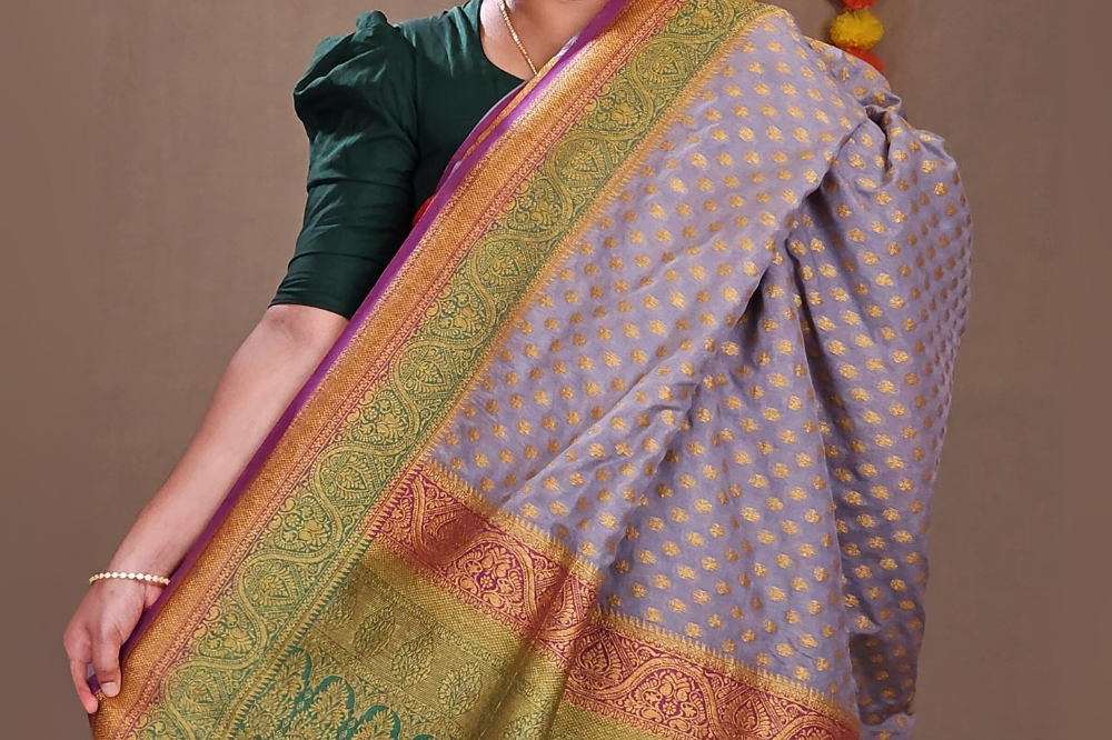 Grey Semi Banaras Khaddi Georgette Sarees