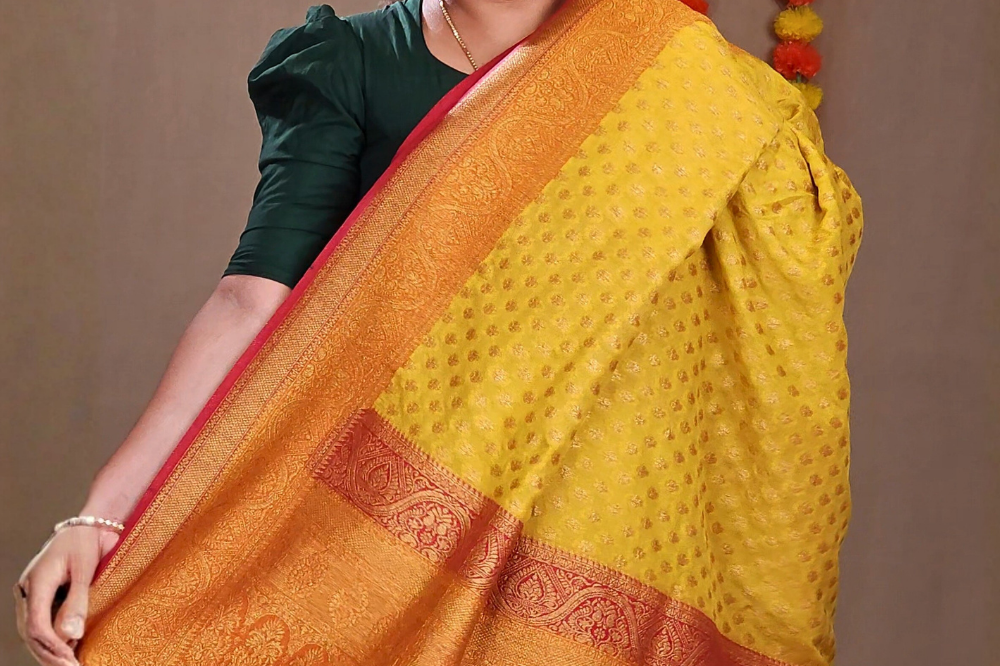 Yellow Semi Banaras Khaddi Georgette Sarees