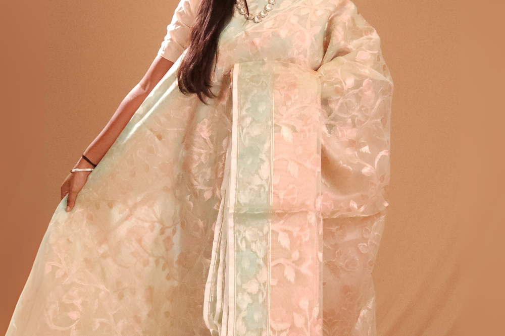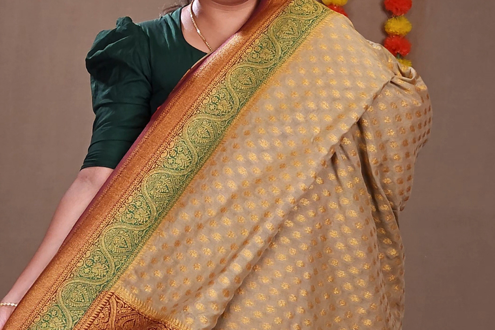 Beige Kora Organza Saree