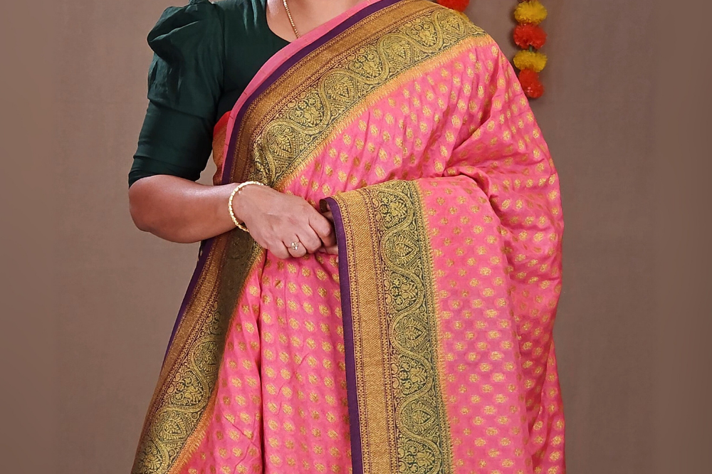 Experience the timeless beauty of 100% Pure Silk Handloom Gadwal Sarees, crafted by skilled artisans and certified by Silk Mark for purity. These sarees feature intricate handwoven zari patterns, rich textures, and a lightweight feel that makes them ideal for weddings, festive occasions, and cultural celebrations.