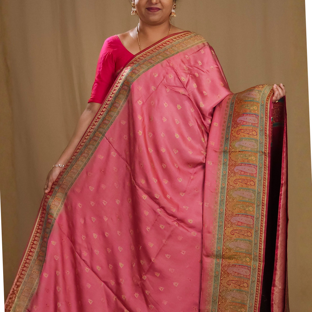 Onion Pink Pashmina Satin Saree