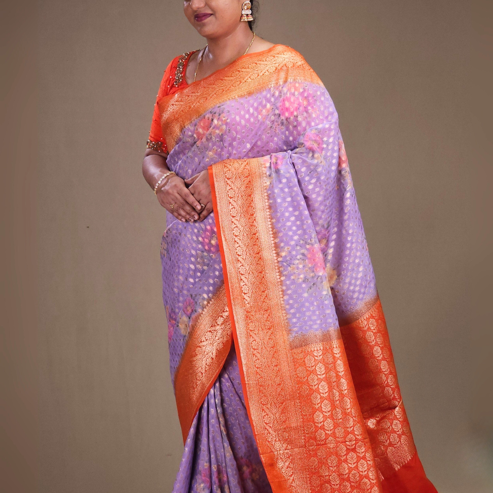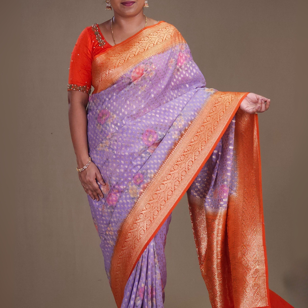 lavender Banaras Georgette Saree