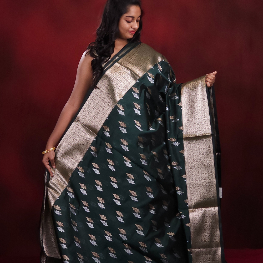 Bottle Green Banaras silk cotton sarees