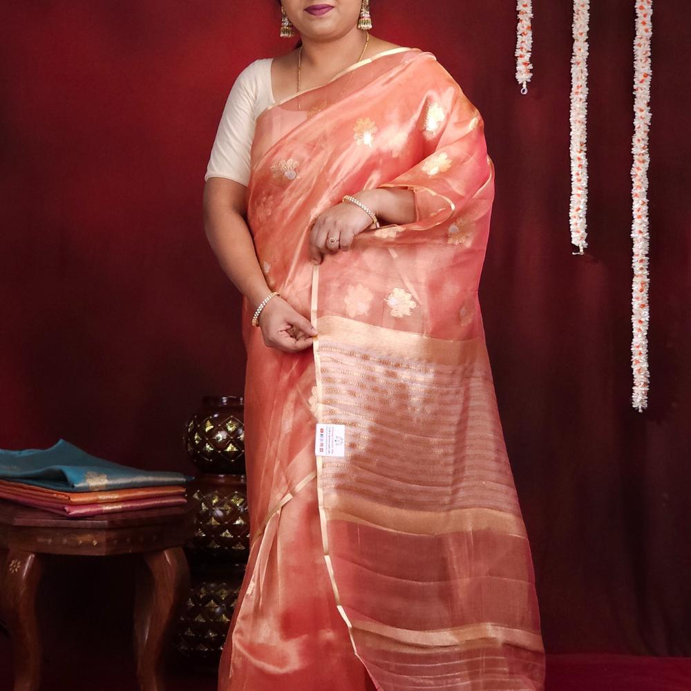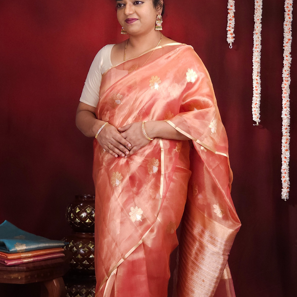 Pastel Pink Kora Tissue Saree