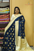Prussian Blue Banaras Satin Silk Saree
