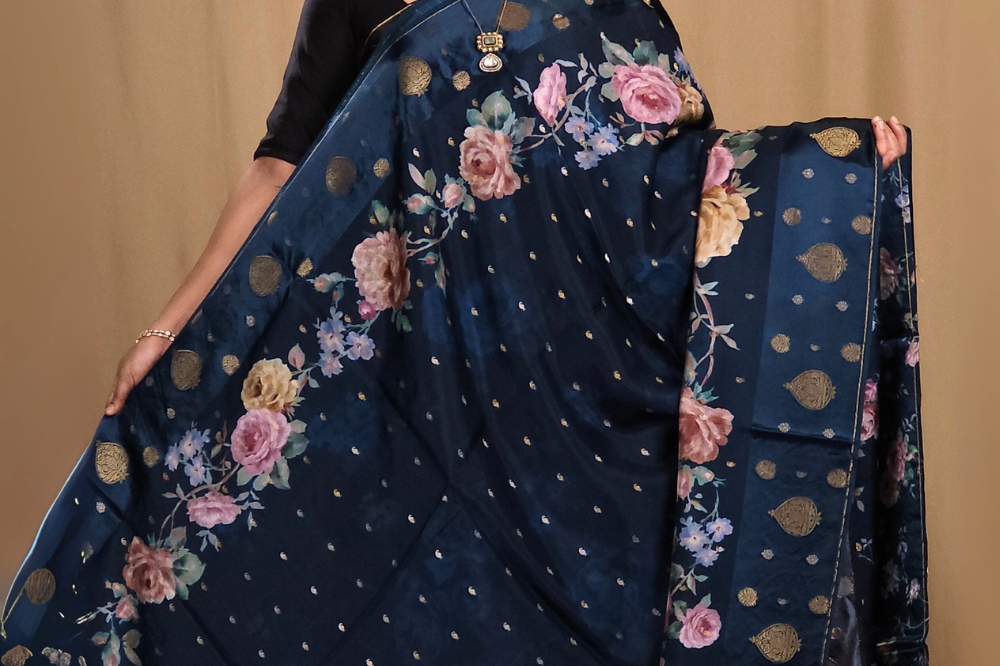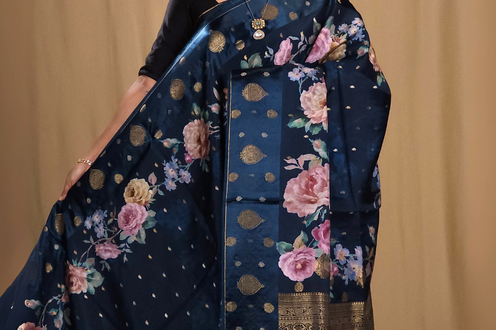 Navy Blue Semi Banaras Khaddi Georgette Sarees