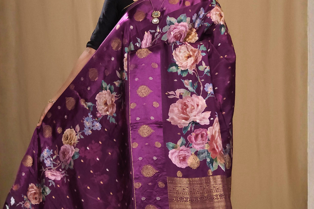 Lotus Pink Semi Banaras Khaddi Georgette Sarees
