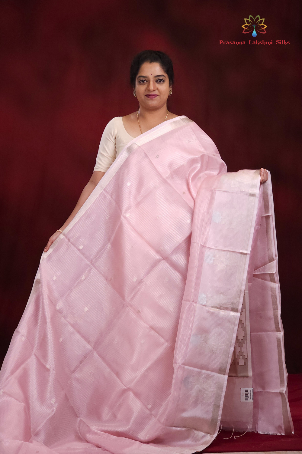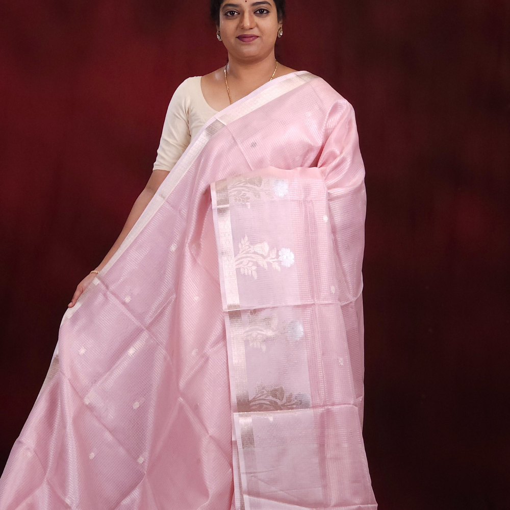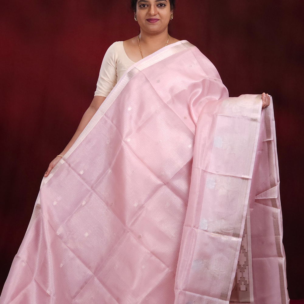 Experience the grandeur of Kota checks saree allover tiny checks with zari-woven motifs and small flower bunches borders in gold and silver zari with simple pallu and running blouse.....