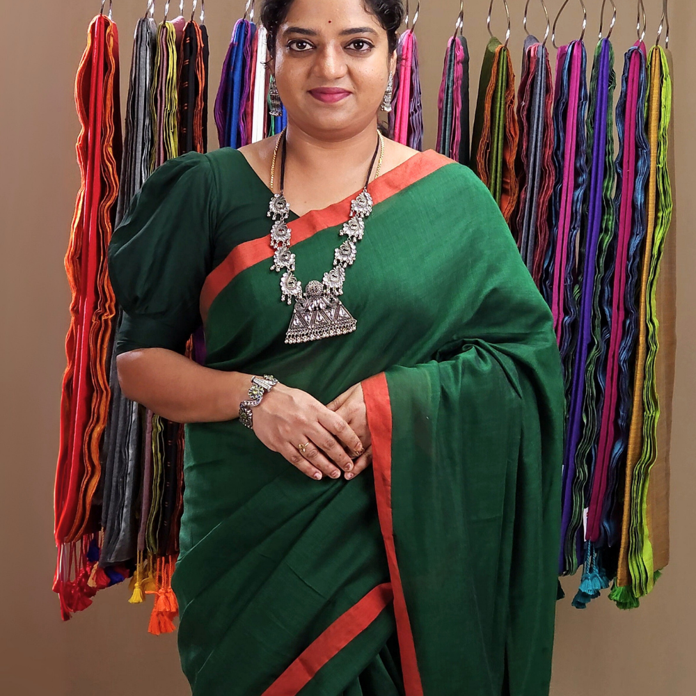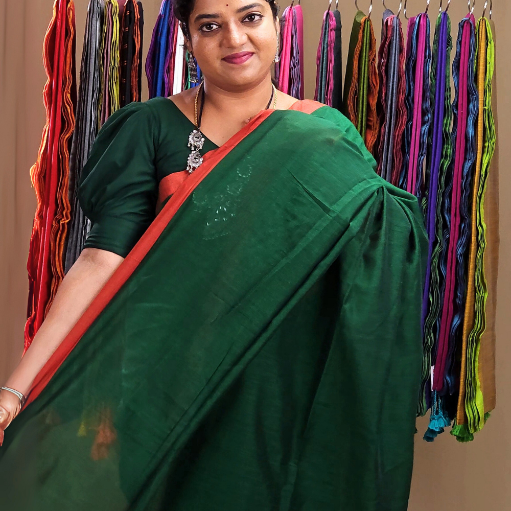 Bottle Green Khaddi Cotton Saree
