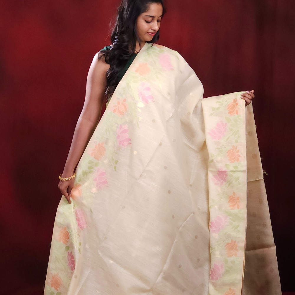 Cream Chanderi Silk Cotton Saree