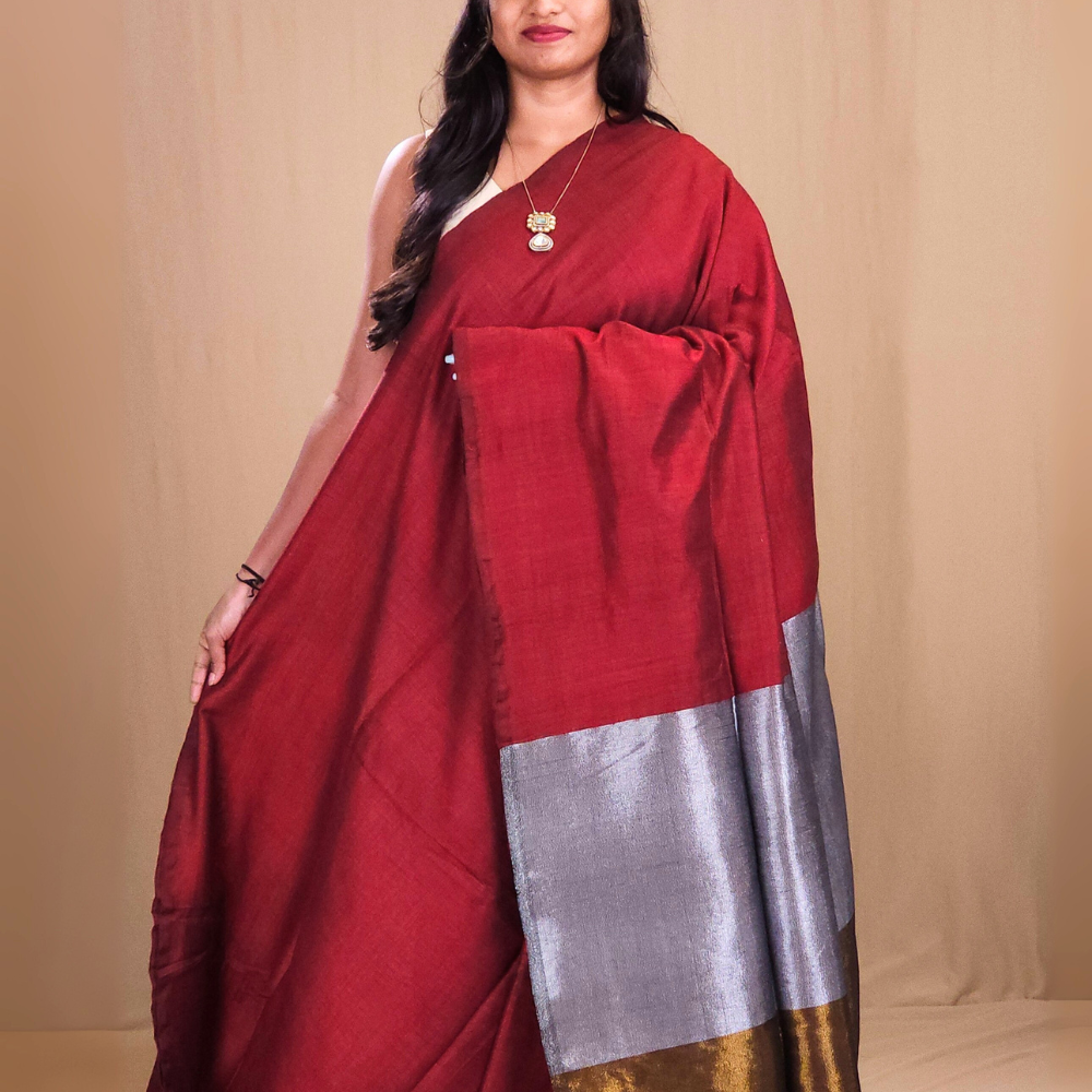 Maroon Khaddi Cotton Saree