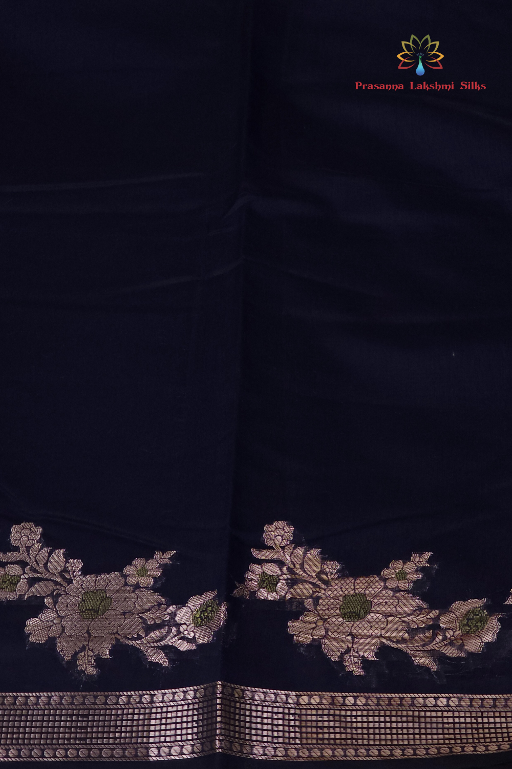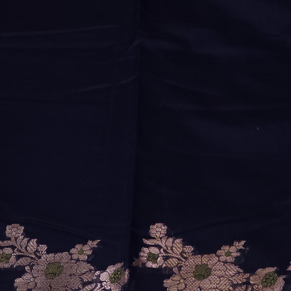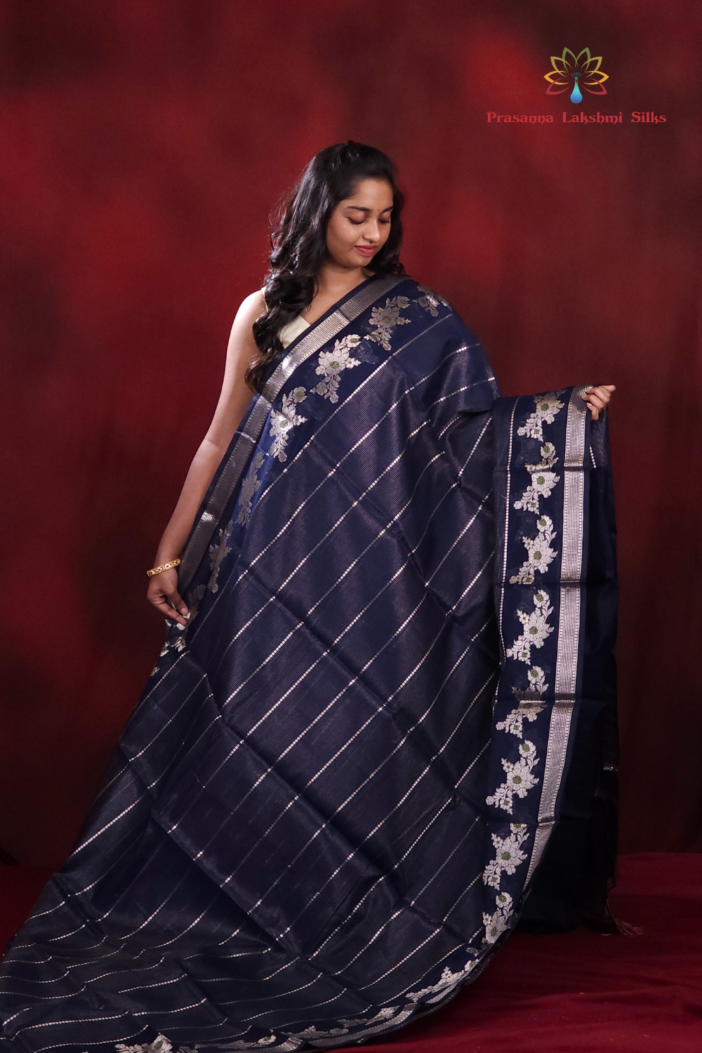 Beautiful Chanderi Saree, featuring allover horizontal zari stripes designed with a unique floral border detailing zari stripes pallu,and a running blouse