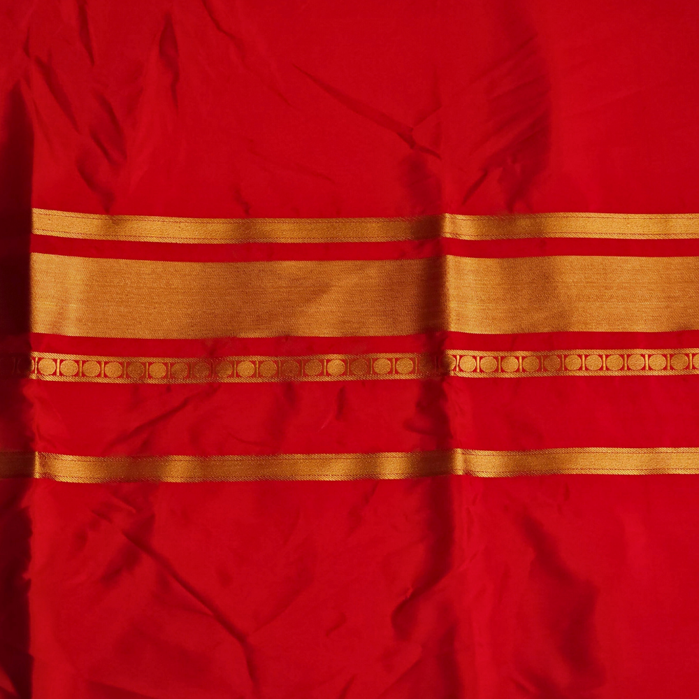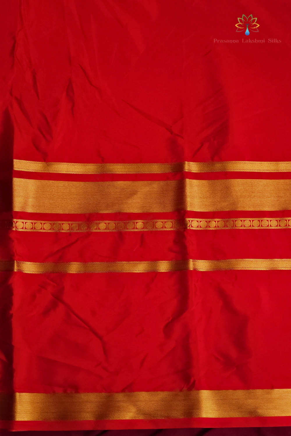 Elevate your style with this Semi Mysore silk saree with big zari woven gap borders in contrast colors.The zari stripe pallu gives it that festive richness, paired beautifully with a contrast blouse.....