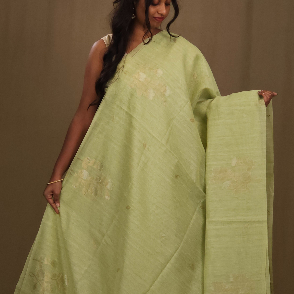 Pista Green Chanderi Dupion Saree
