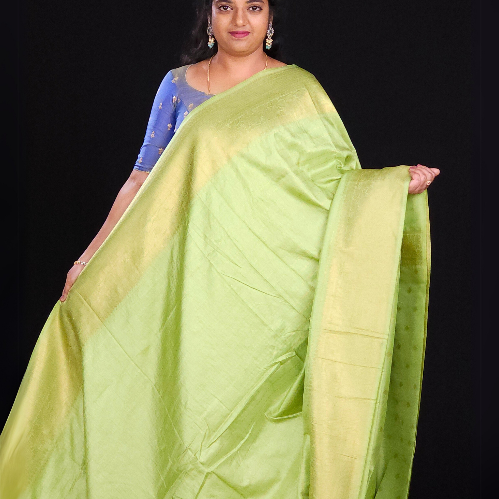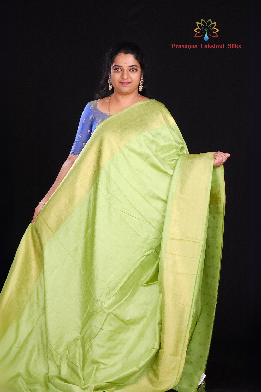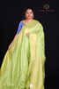 Soft silk Saree with allover beautiful Horizontal stripes with floral zari woven borders ,rich brocade pallu,paired with runnig blouse