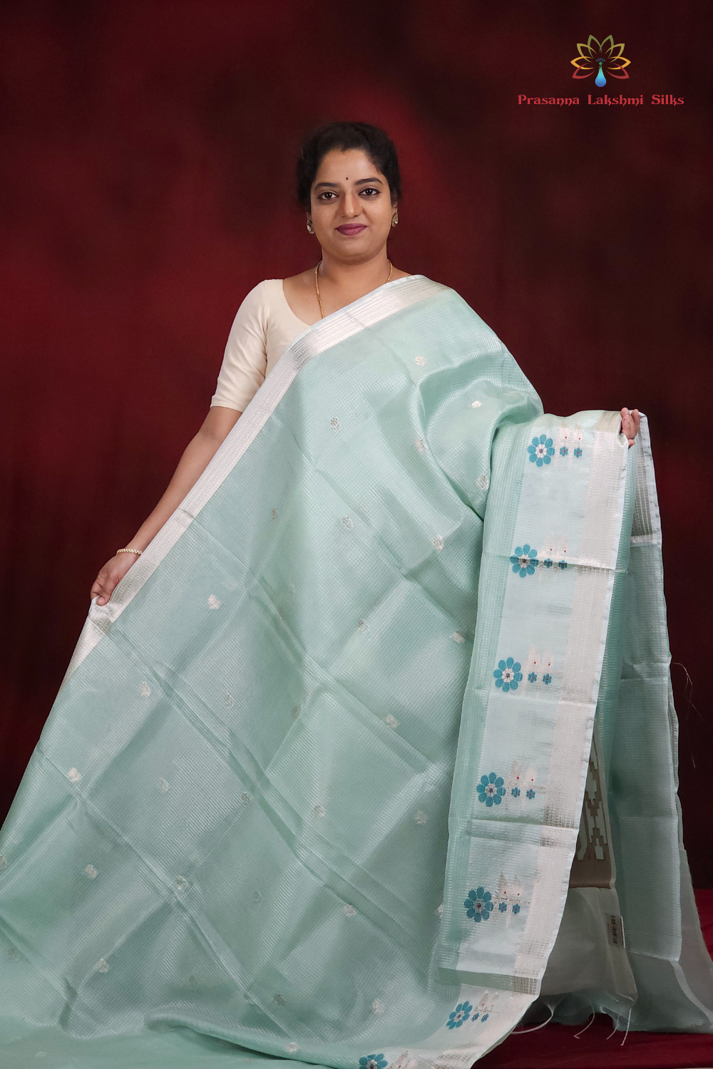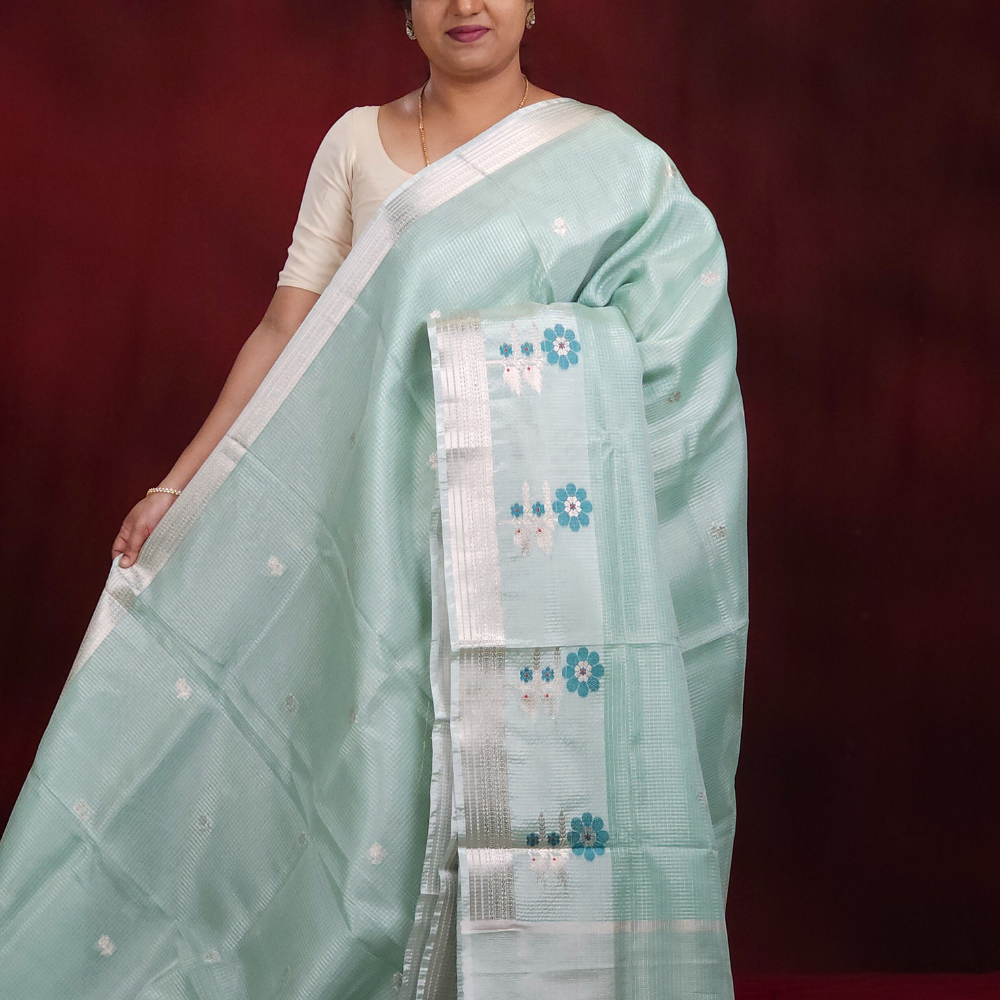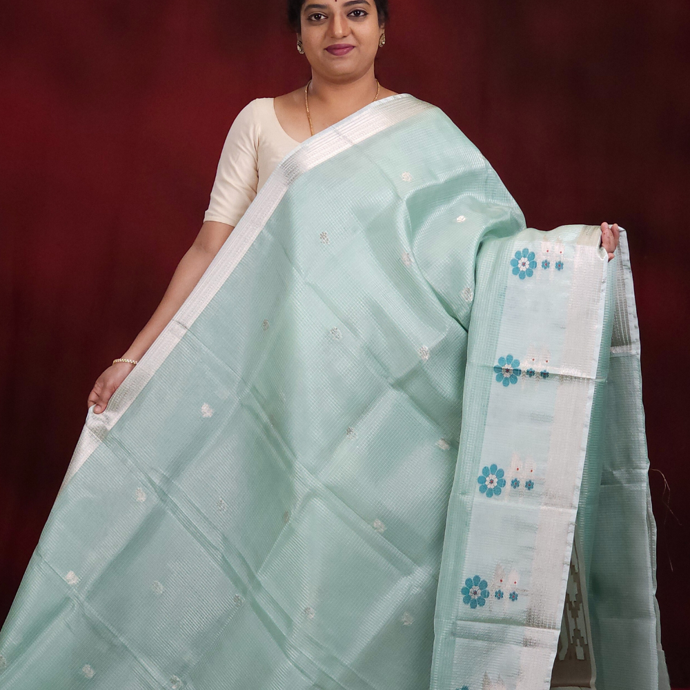 Experience the grandeur of Kota checks saree allover tiny checks with zari-woven motifs and small flower bunches borders in gold and silver zari with simple pallu and running blouse.....