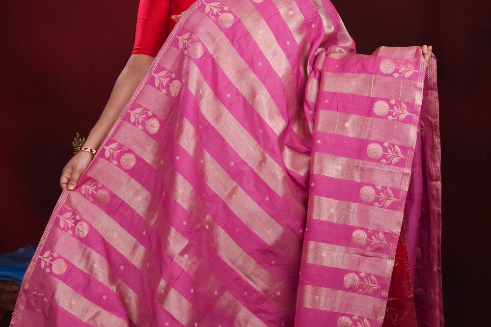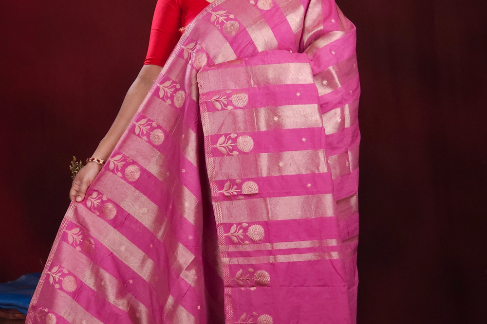 Experience the timeless beauty of 100% Pure Silk Handloom Gadwal Sarees, crafted by skilled artisans and certified by Silk Mark for purity. These sarees feature intricate handwoven zari patterns, rich textures, and a lightweight feel that makes them ideal for weddings, festive occasions, and cultural celebrations.
