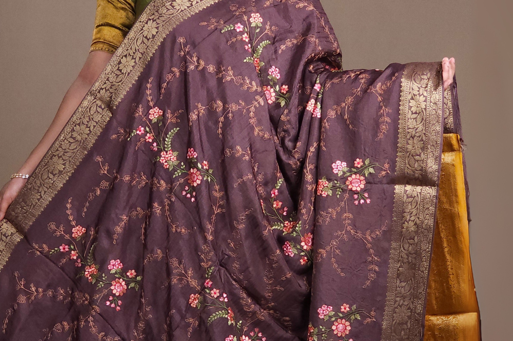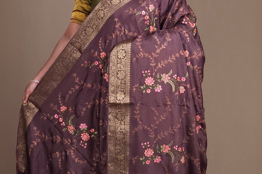 Mauve Pink and Brick Red Chanderi Silk Cotton Saree