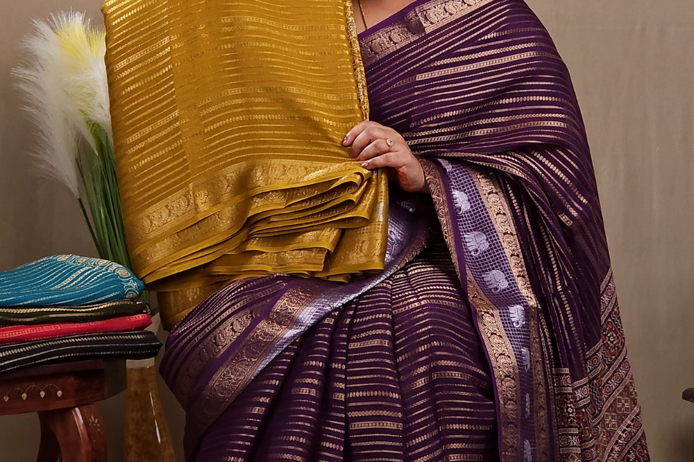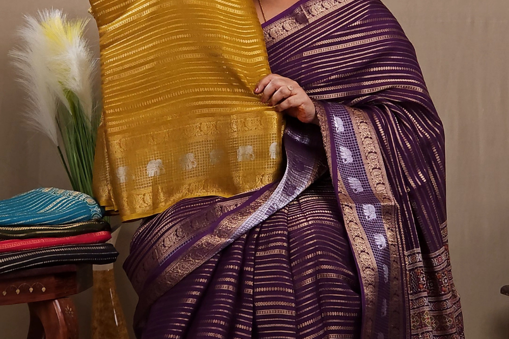 Experience the timeless beauty of 100% Pure Silk Handloom Gadwal Sarees, crafted by skilled artisans and certified by Silk Mark for purity. These sarees feature intricate handwoven zari patterns, rich textures, and a lightweight feel that makes them ideal for weddings, festive occasions, and cultural celebrations.