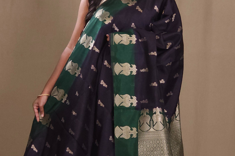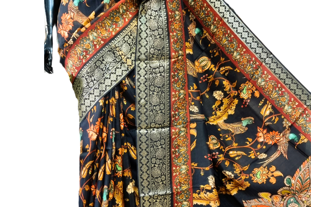 Black Semi Dupion Saree