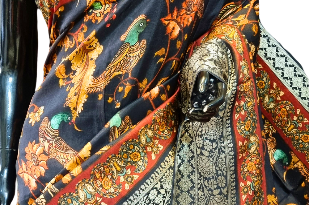 Black Chanderi Dupion Saree