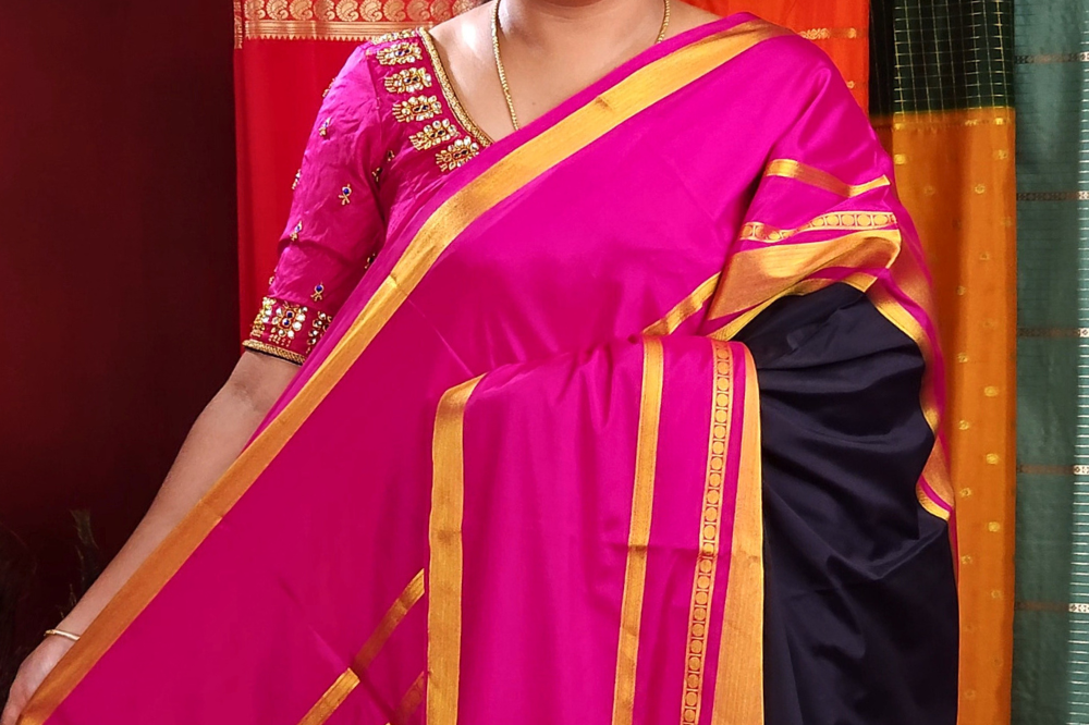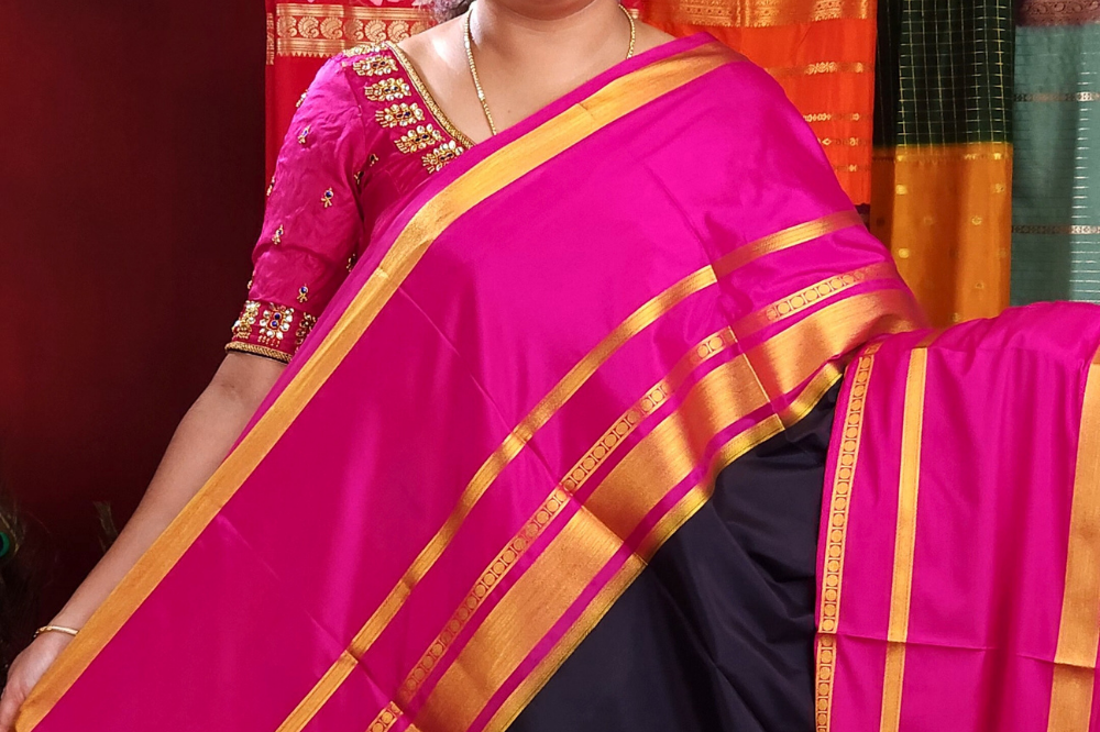 Black and Pink Semi Mysore Silk Saree