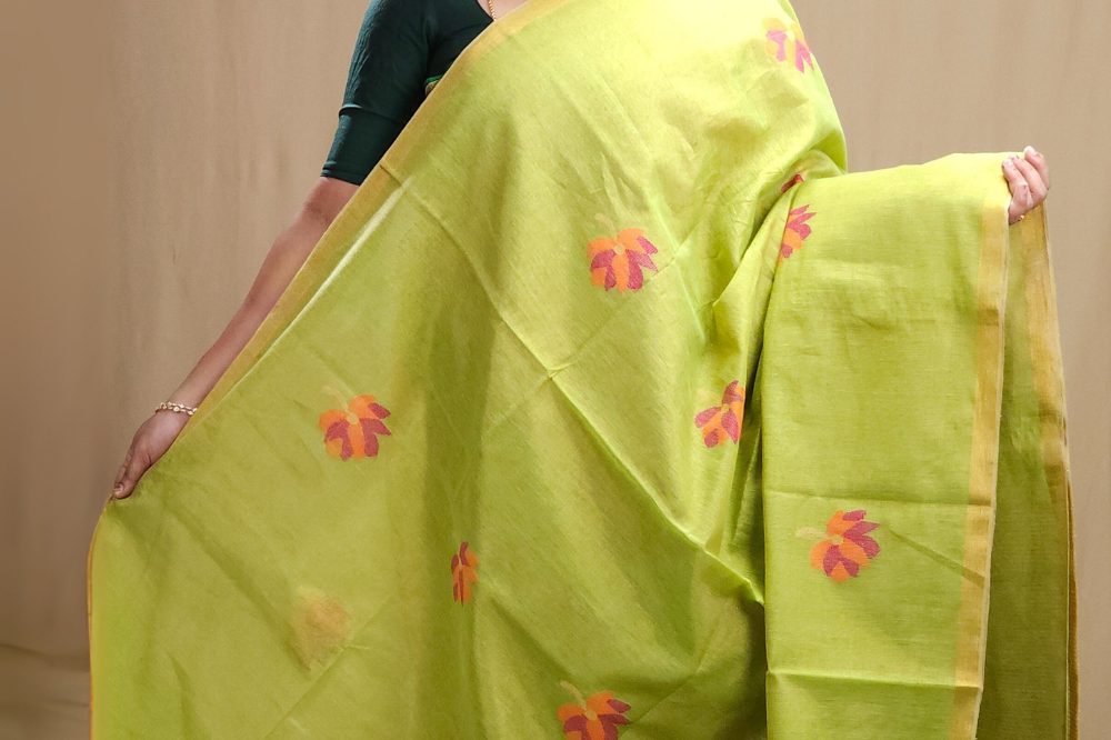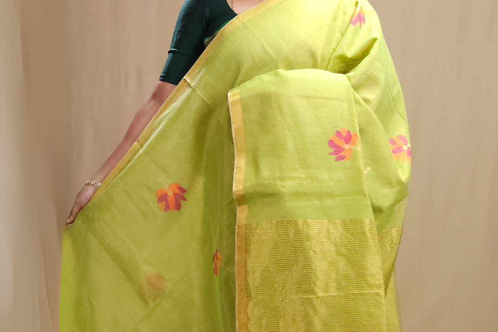 Pista Green Linen Tissues Sarees
