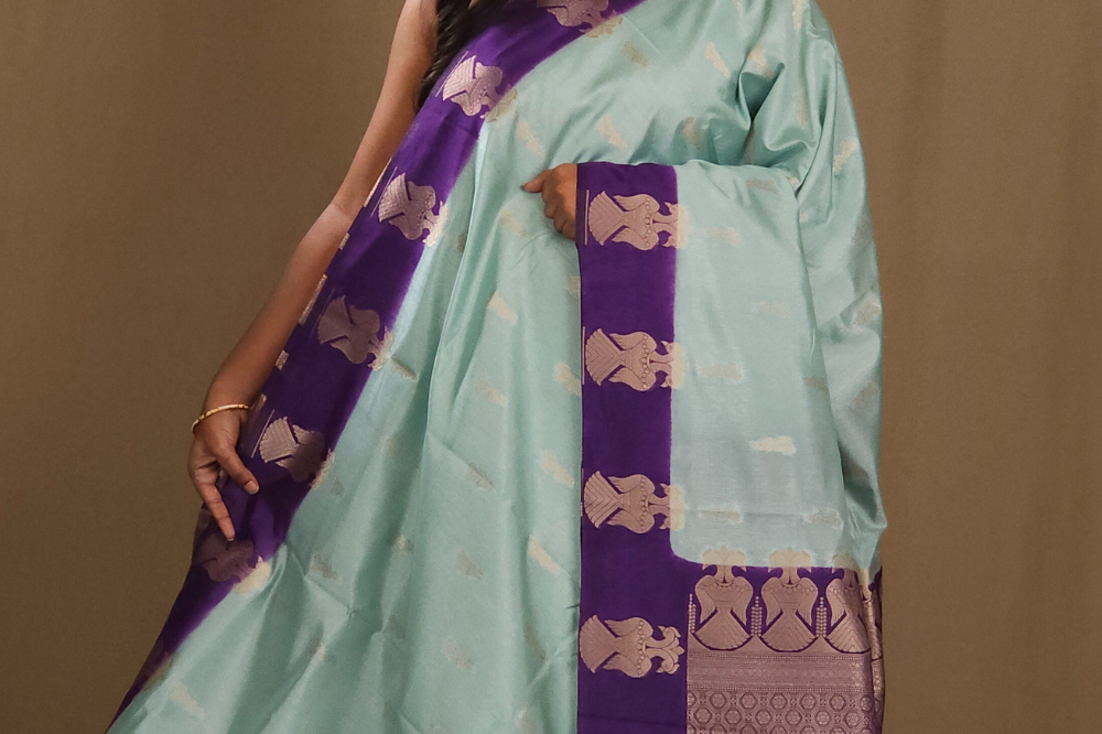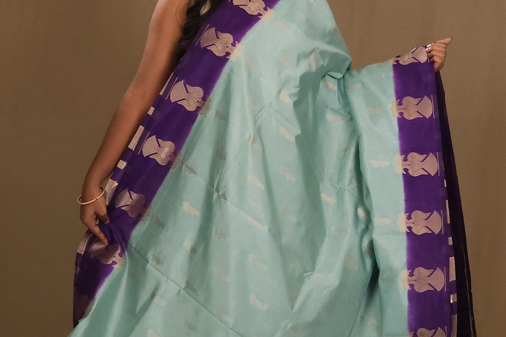 Powder Blue Semi Dupion Saree