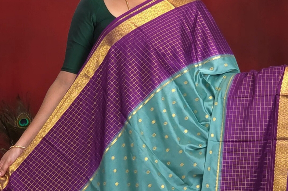 Powder Blue Semi Mysore Silk Saree