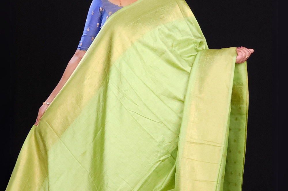 Pista Green Chanderi Silk Cotton Saree