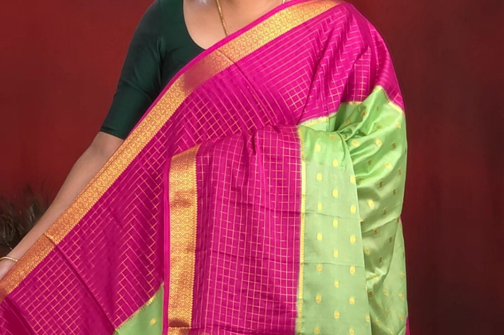 Pista Green Semi Mysore Silk Saree
