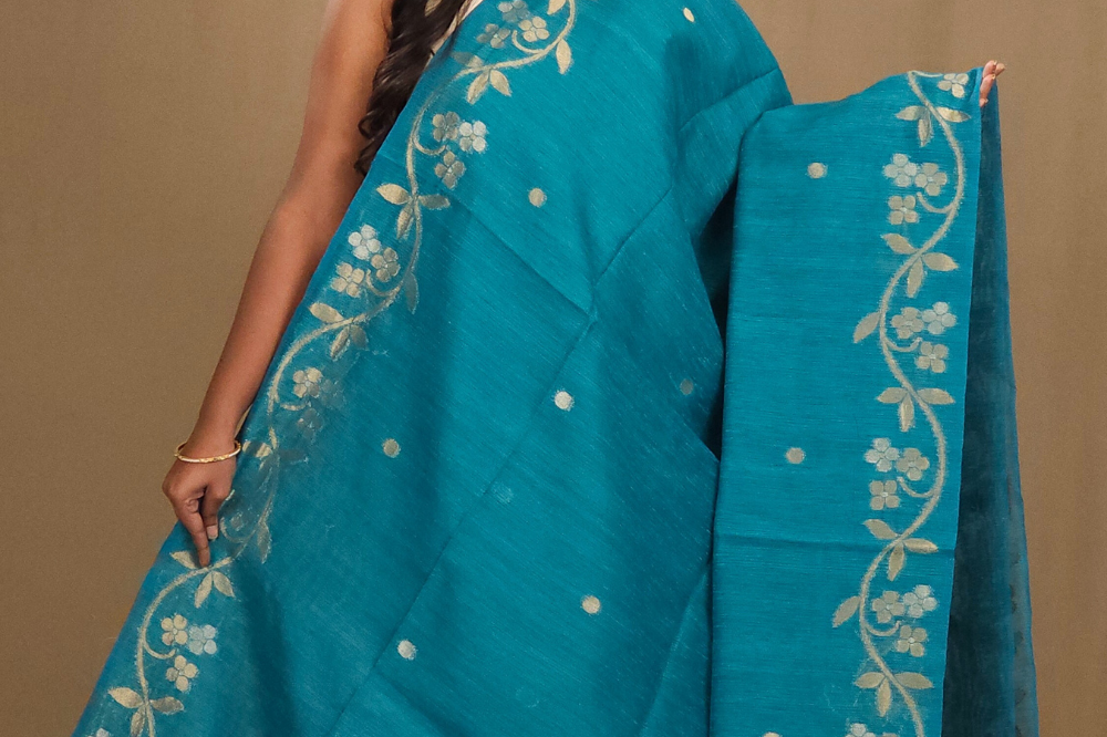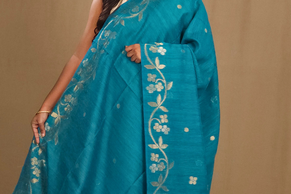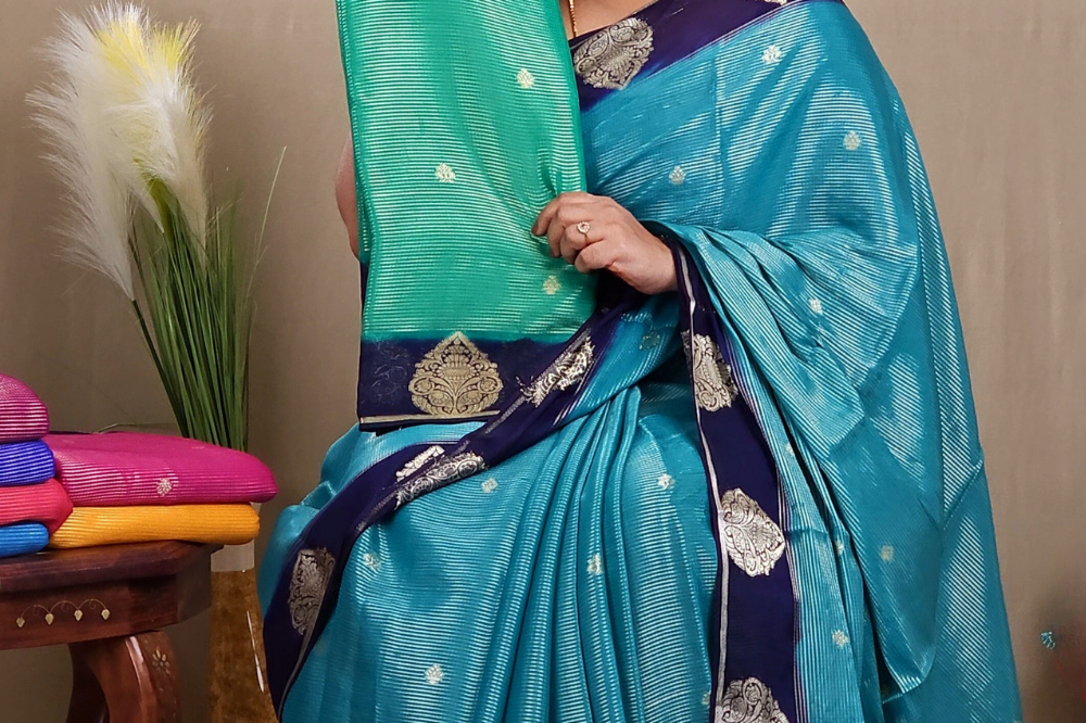 Rama Green and Brown Chanderi Silk Cotton Saree
