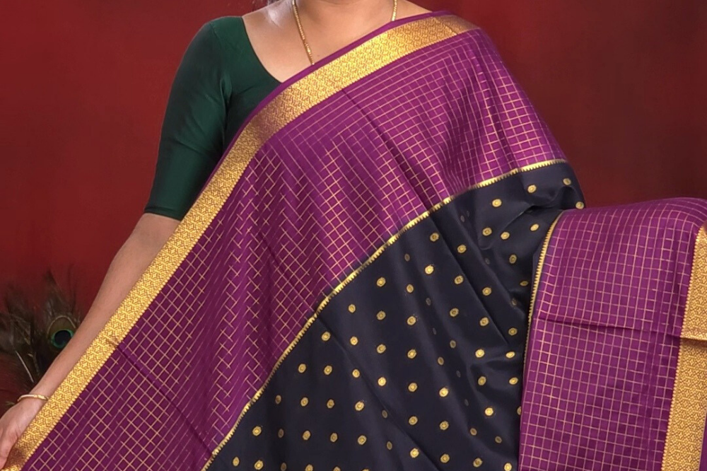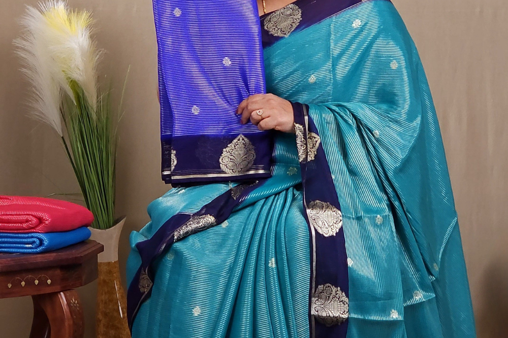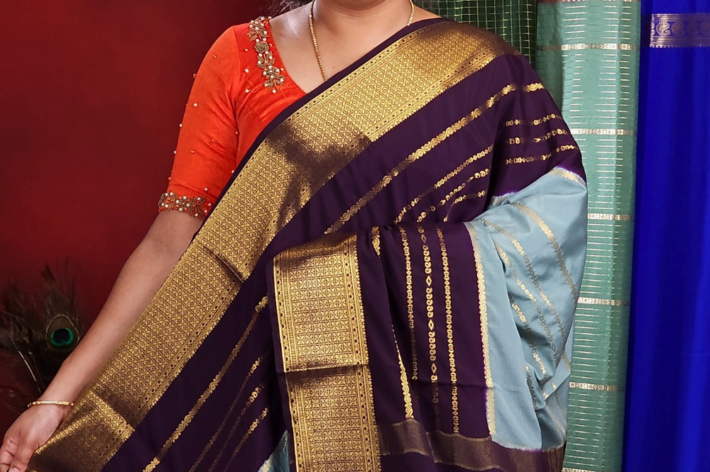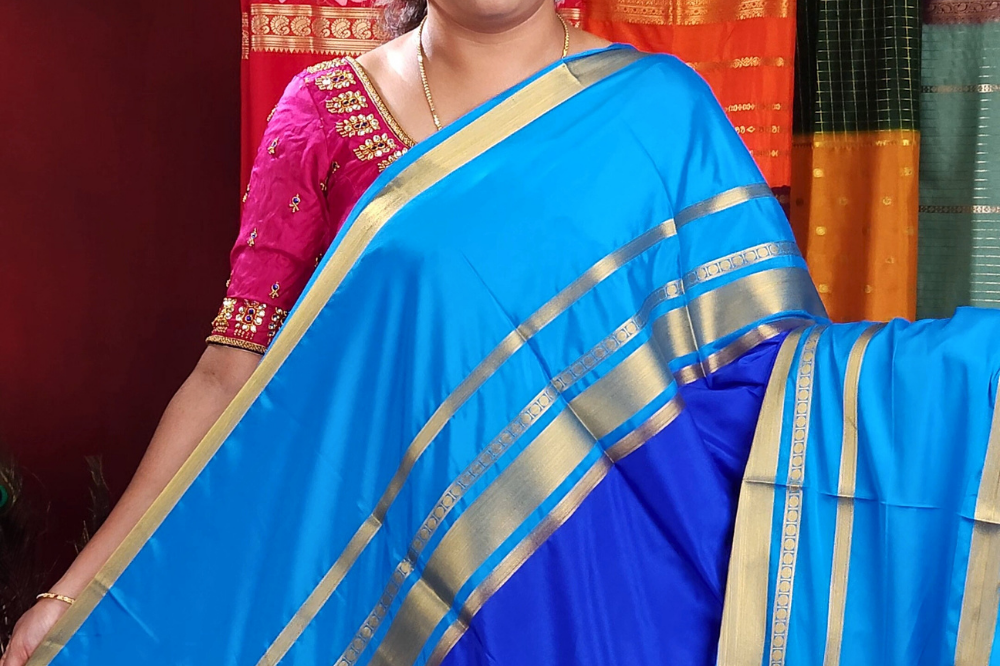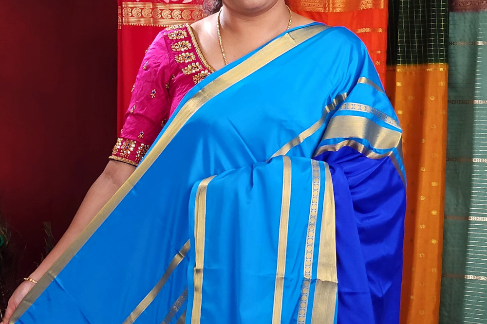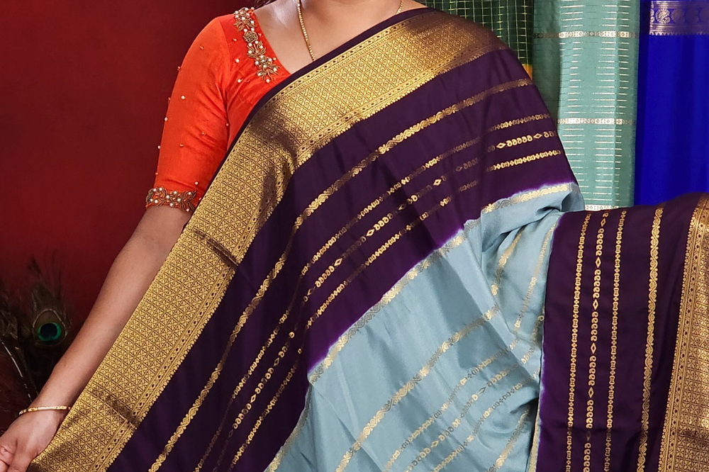 Blue and Copper Sulphate Blue Semi Mysore Silk Saree