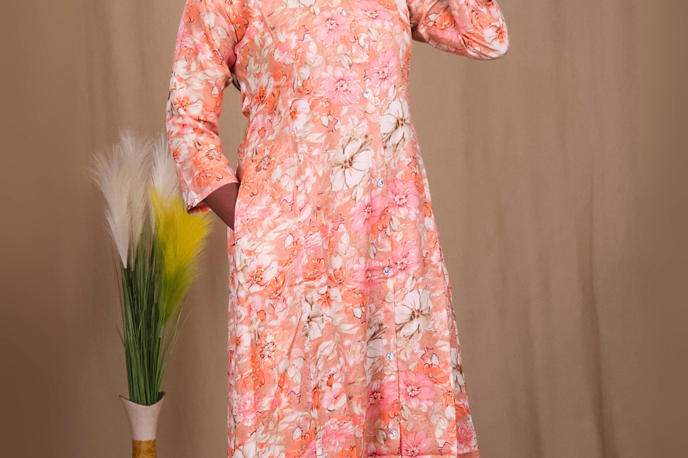 Peach Rayon co-ord set.