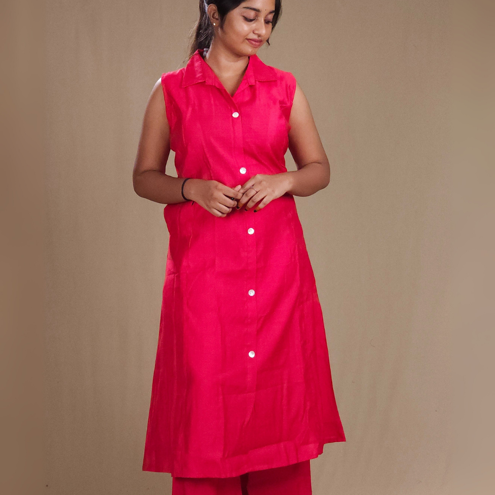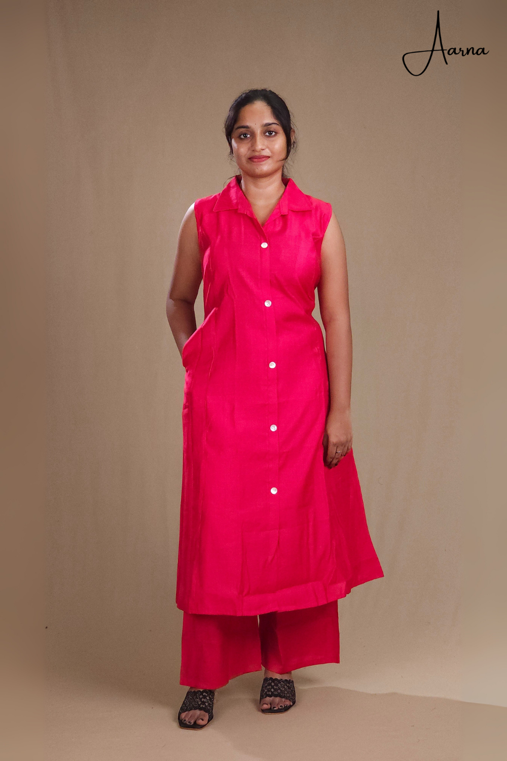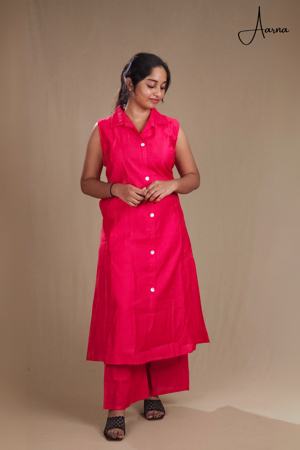 Stay stylish and comfortable with this rayon co-ord set. It features a plain top with a collar neck and button detailing, paired with matching pants . Perfect for everyday outings or casual workwear
