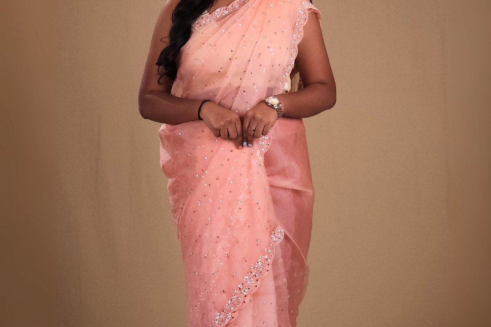 Baby Pink Pure Organza Saree