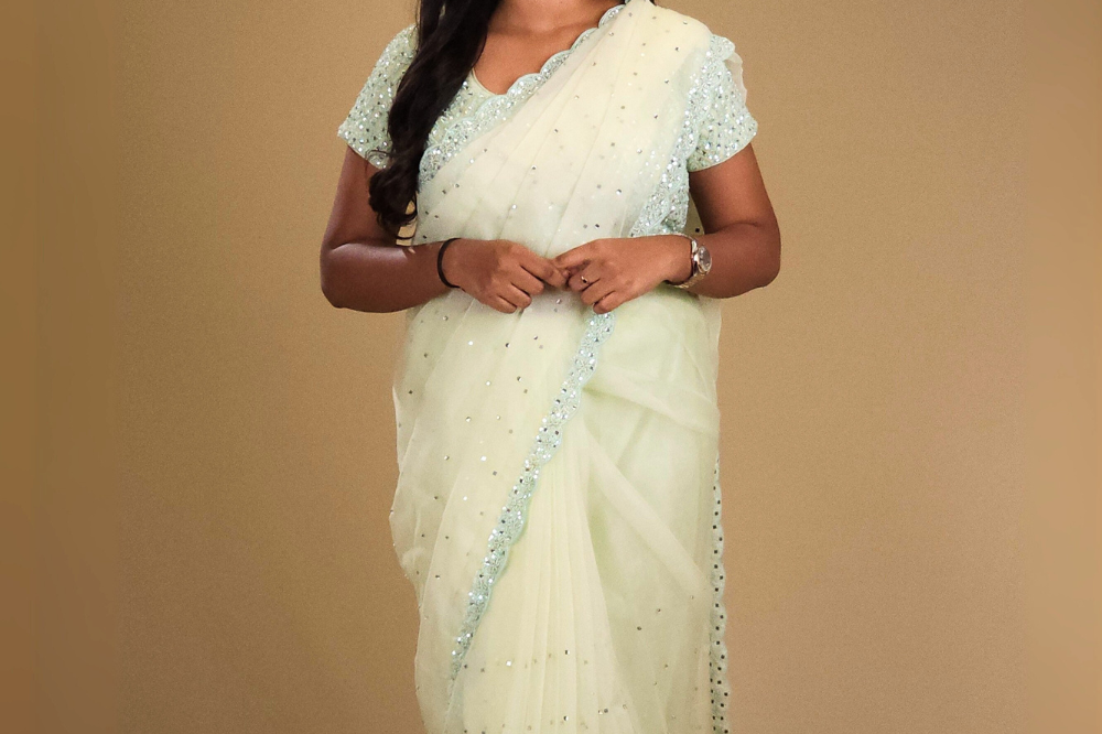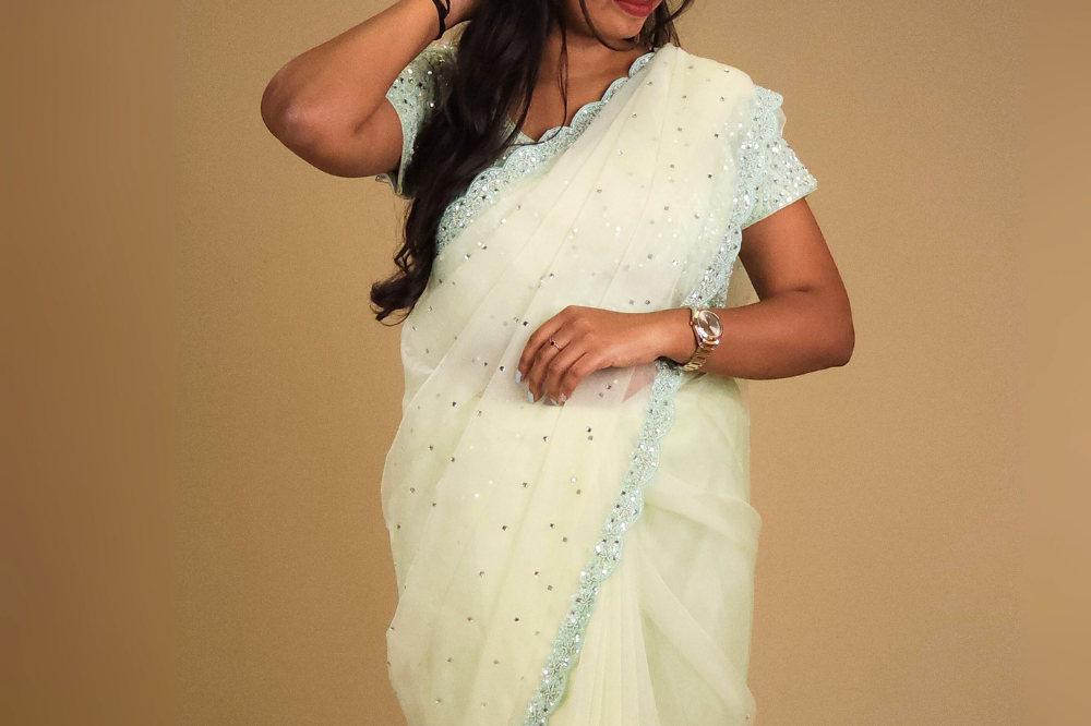 Pastel Green Pure Organza Saree