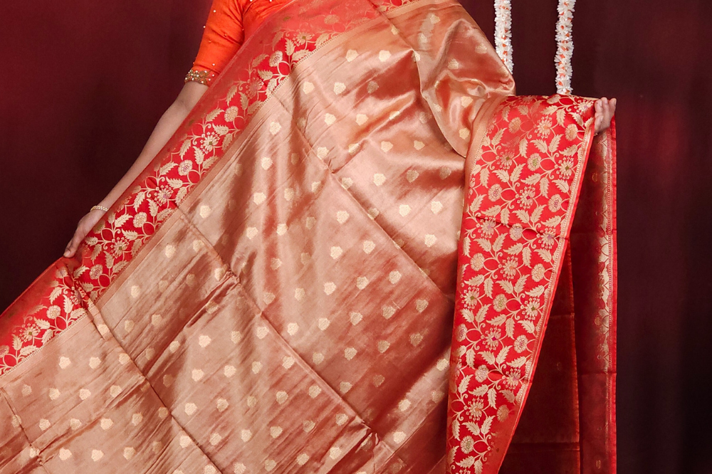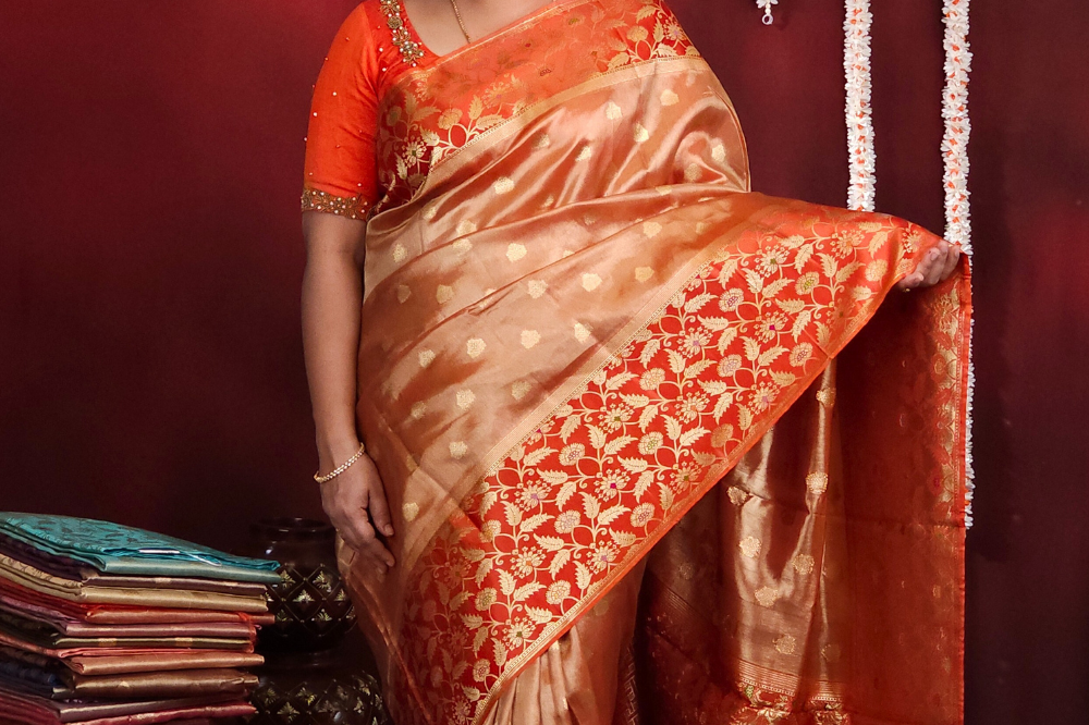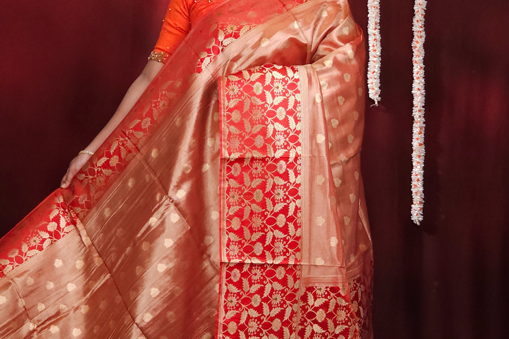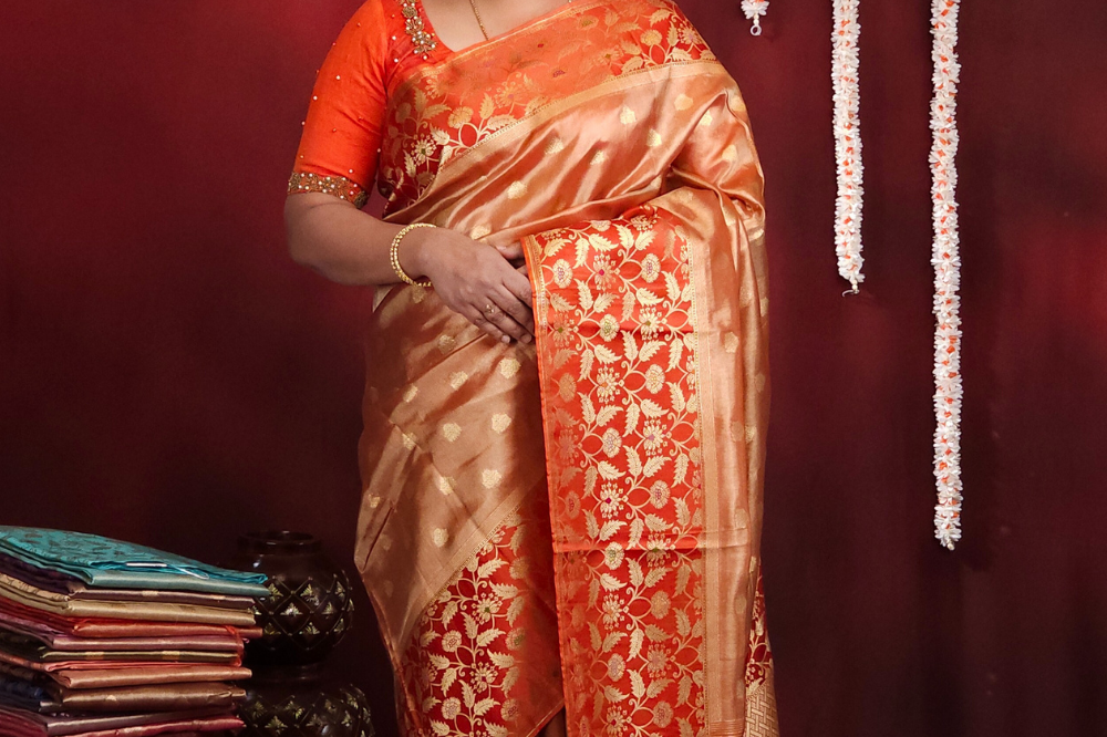 Orange Banarasi Tissue Saree