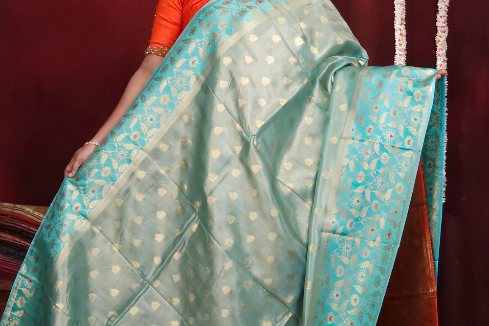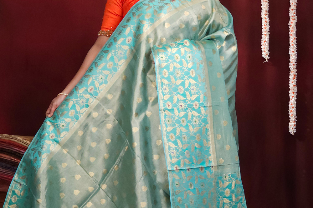 Aqua Green Banarasi Tissue Saree