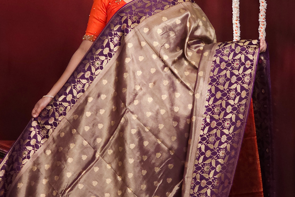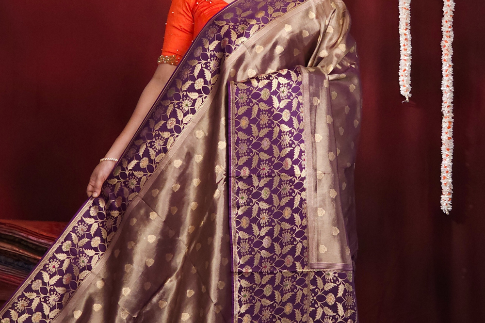 Violet Banarasi Tissue Saree